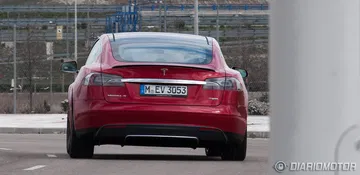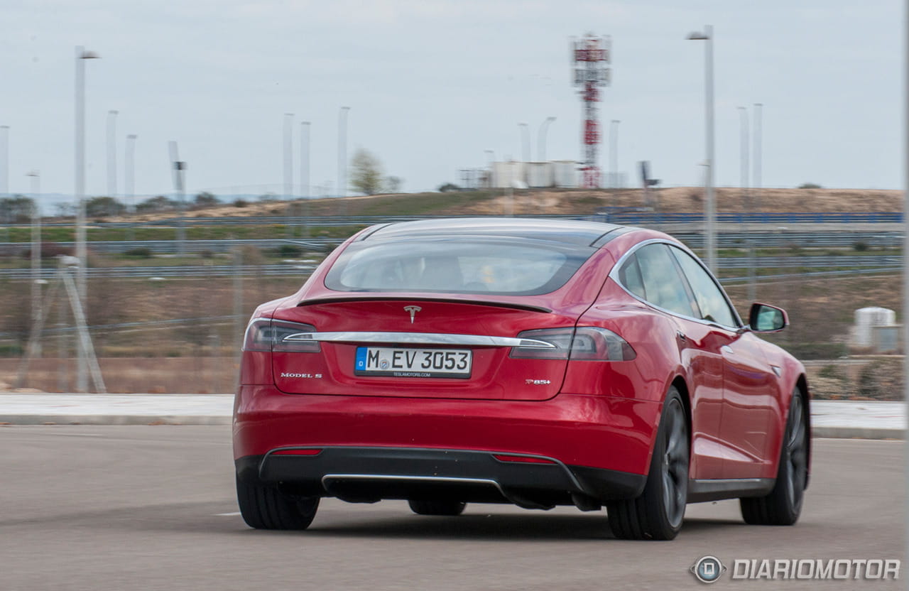 Aunque he conducido coches con similar concepto y potencia, como el Fisker Karma, he de decir que la sensación que te transmite el Tesla Model S no tiene que ver con la apreciada en ningún otro coche que haya probado. Hundes el pie a fondo en el acelerador y te quedas pegado al respaldo de tu asiento, pero apenas se escucha poco más que el sonido de las ruedas con el asfalto y el viento que corta contra el parabrisas. Es una aceleración contundente que no podrás experimentar en cualquier otro coche, que se nos puede asemejar a la de acelerar a fondo un motor de ocho cilindros en uve con cambio de variador continuo.