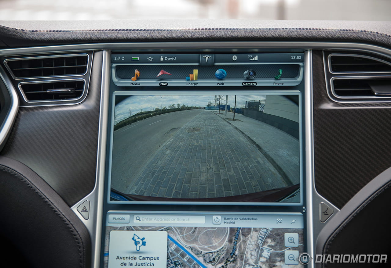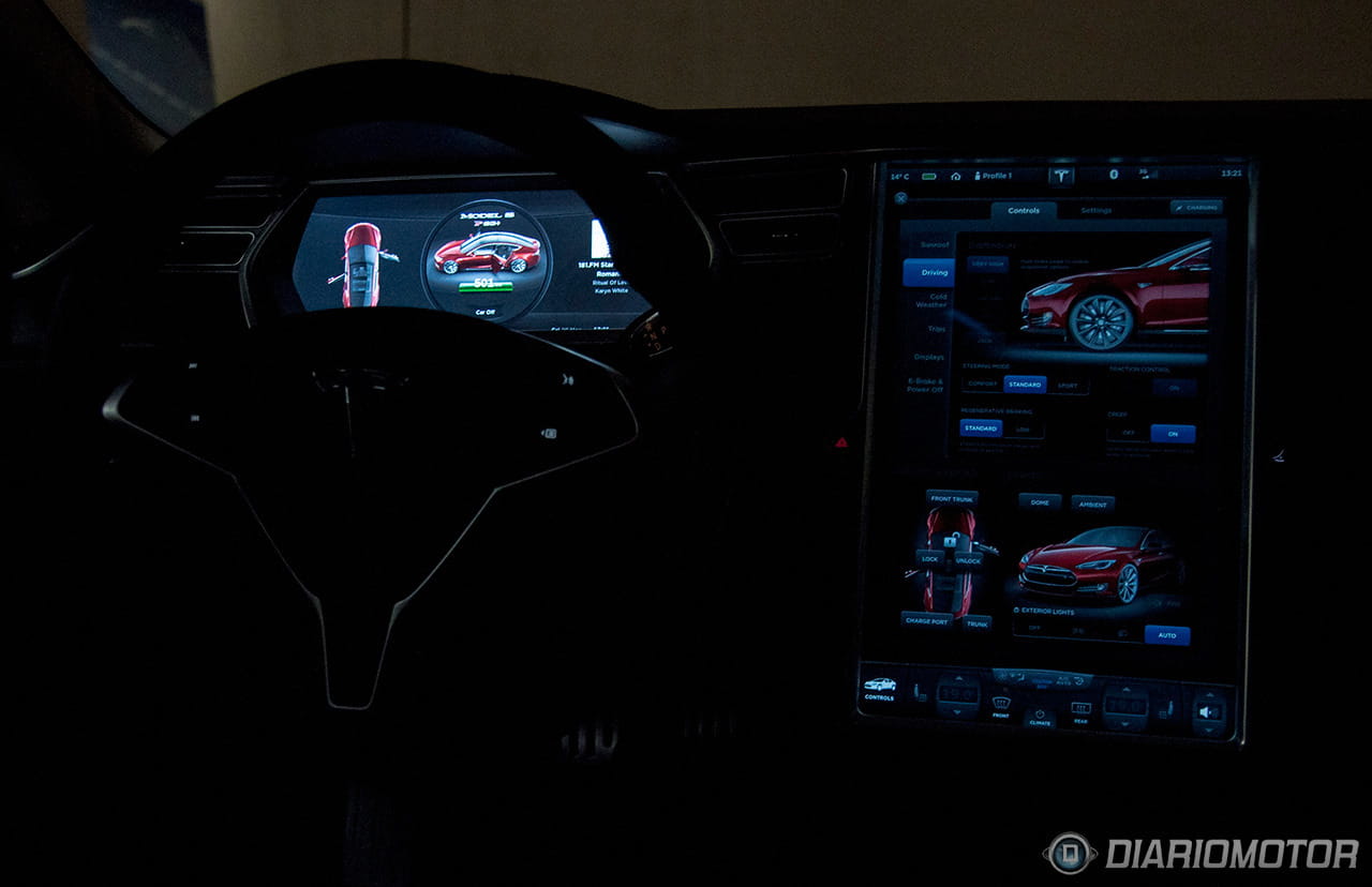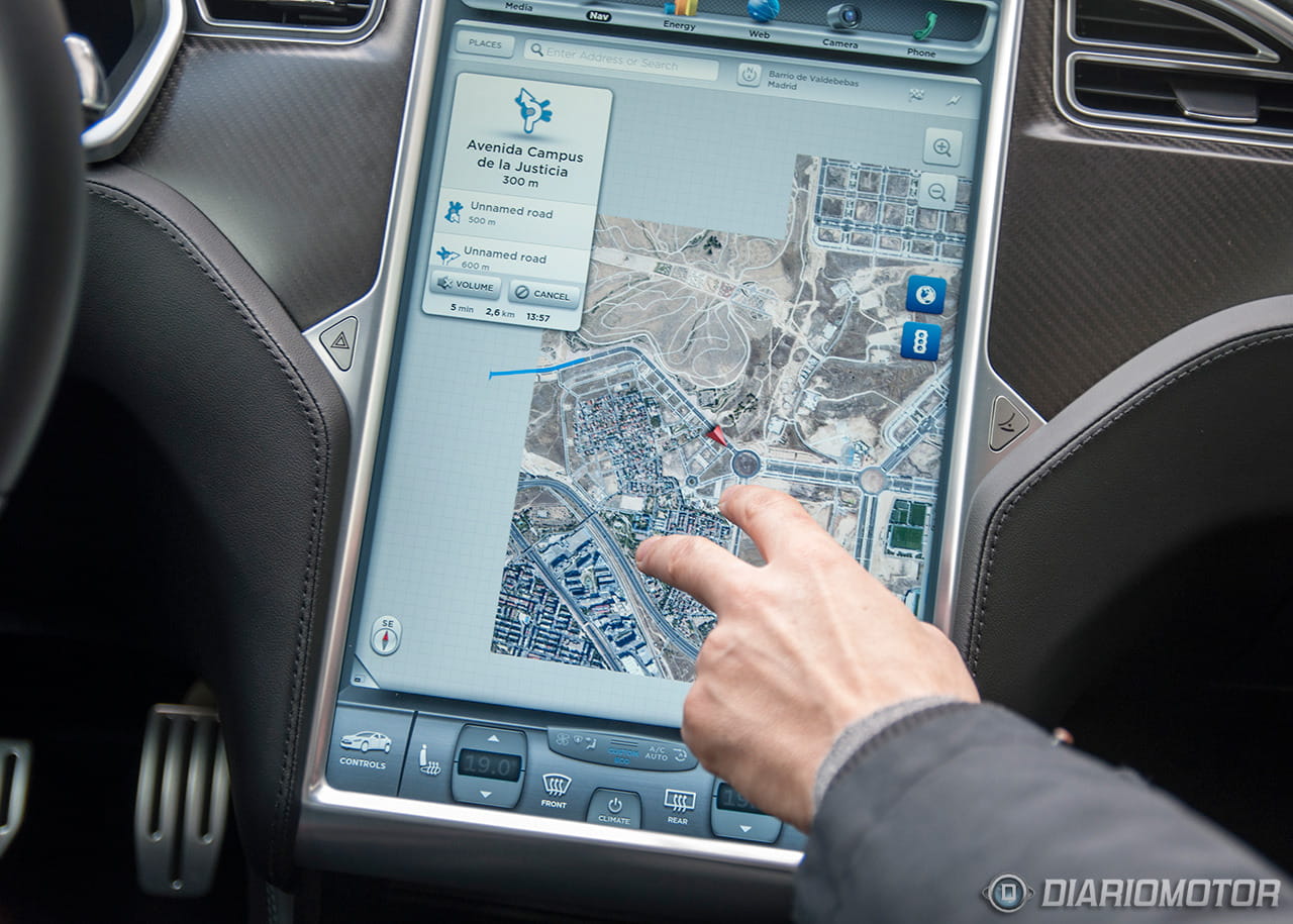 Al ser tan grande, no hay que ser muy preciso tocando los inmensos botones que se dibujan en la pantalla para gestionar el equipo de sonido con altavoces de alta fidelidad – que suena a gloria, por cierto, y que resulta realmente recomendable en un coche tan silencioso como este – o el equipo de climatización, con cinco asientos calefactados en esta versión Plus. La pantalla del Tesla Model S es tan avanzada como un buen tablet, lo cual ya es mucho decir si tenemos en cuenta que la industria del automóvil no va precisamente a la vanguardia de estas tecnologías.