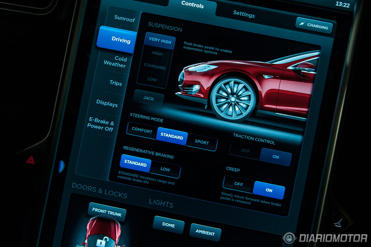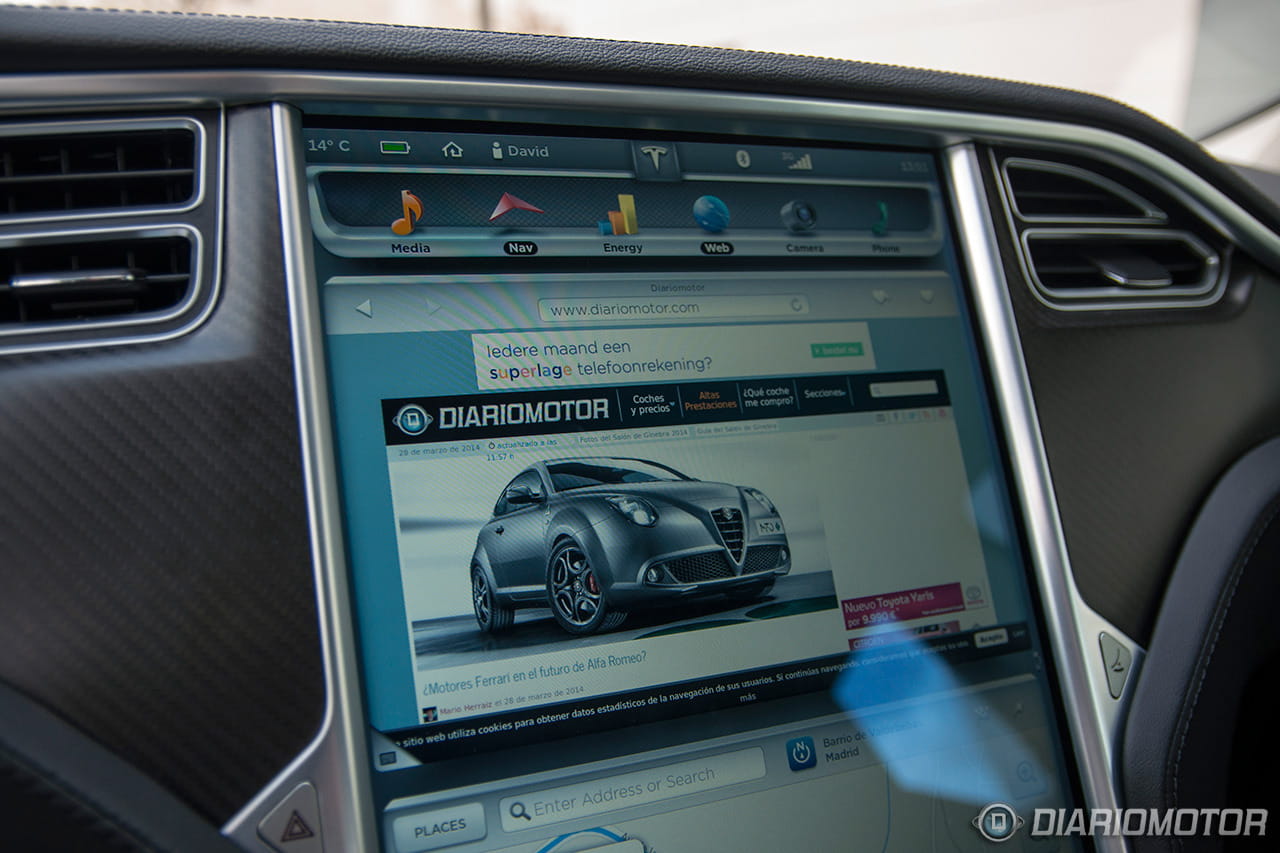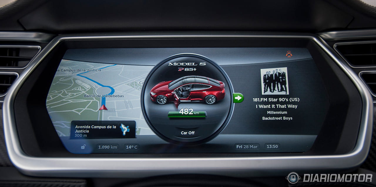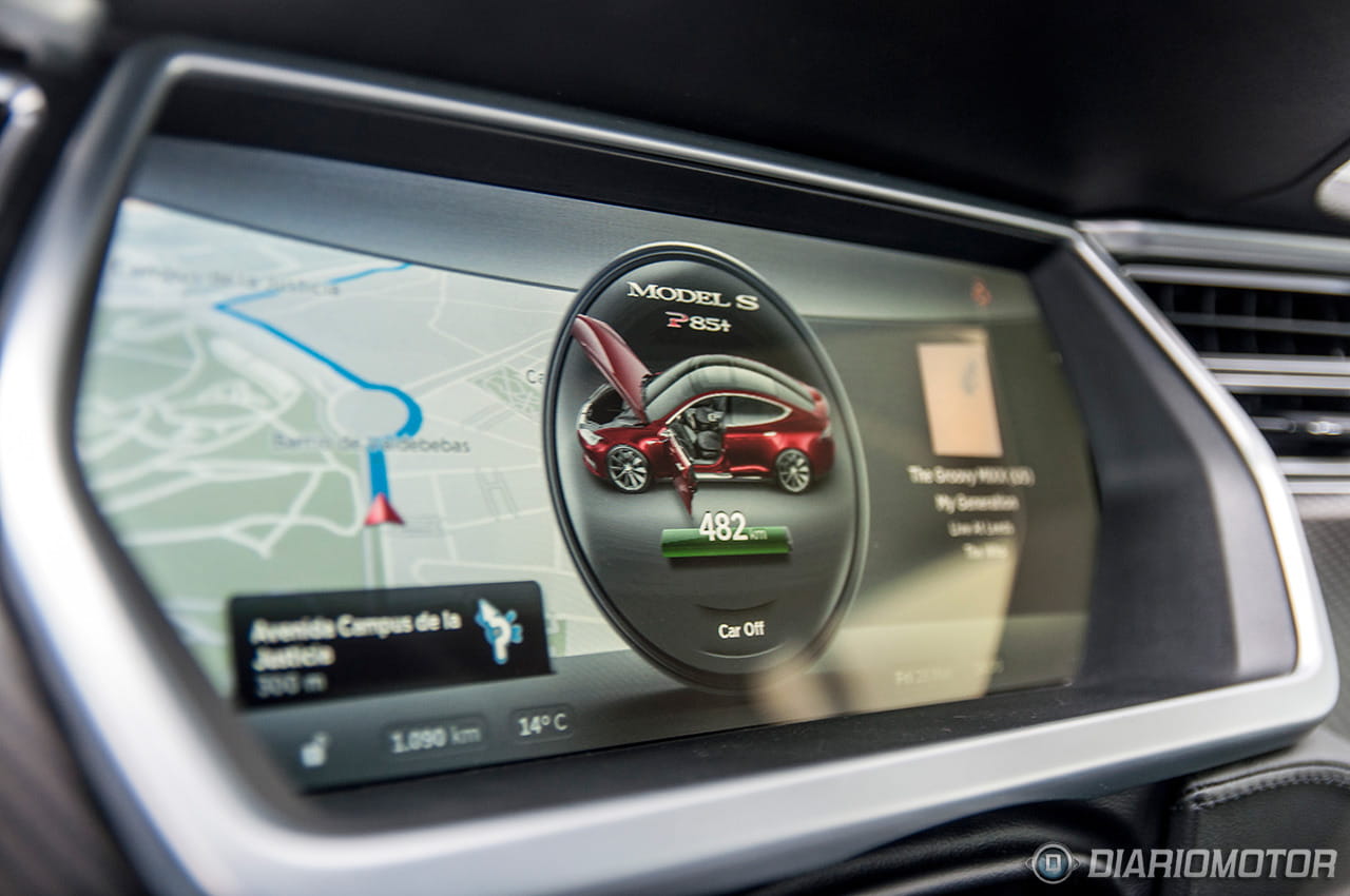 Al ser tan grande, no hay que ser muy preciso tocando los inmensos botones que se dibujan en la pantalla para gestionar el equipo de sonido con altavoces de alta fidelidad – que suena a gloria, por cierto, y que resulta realmente recomendable en un coche tan silencioso como este – o el equipo de climatización, con cinco asientos calefactados en esta versión Plus. La pantalla del Tesla Model S es tan avanzada como un buen tablet, lo cual ya es mucho decir si tenemos en cuenta que la industria del automóvil no va precisamente a la vanguardia de estas tecnologías.