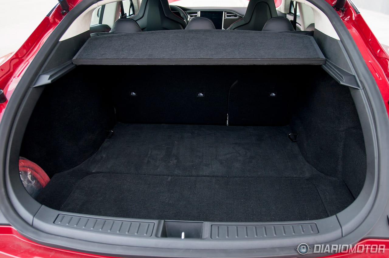 Otro hecho sorprendente es que el Tesla Model S cuenta con dos maleteros. Con las baterías distribuidas bajo el piso y el motor en el mismo tren trasero, el Model S no solo se permite el lujo de ofrecerte un inmenso maletero de más de 740 litros, con portón y fácilmente ampliable abatiendo asientos. Cuenta con apertura eléctrica y un botón instalado en el portón para tal efecto.