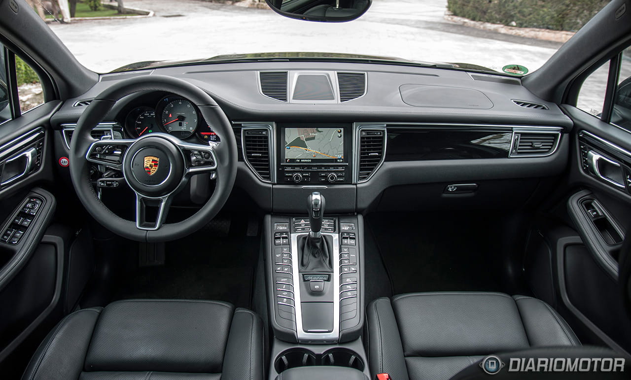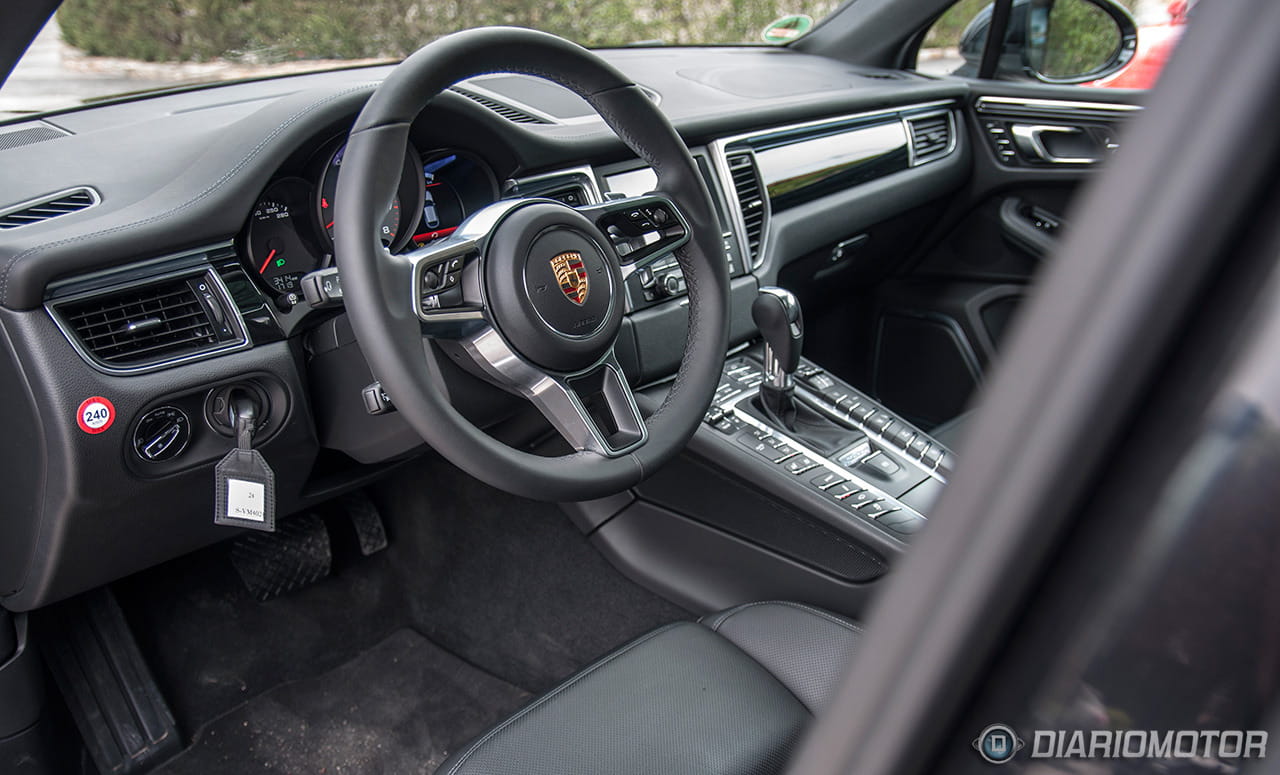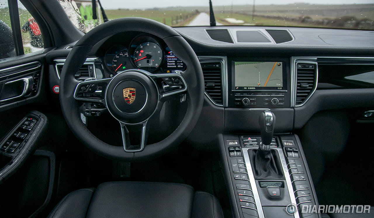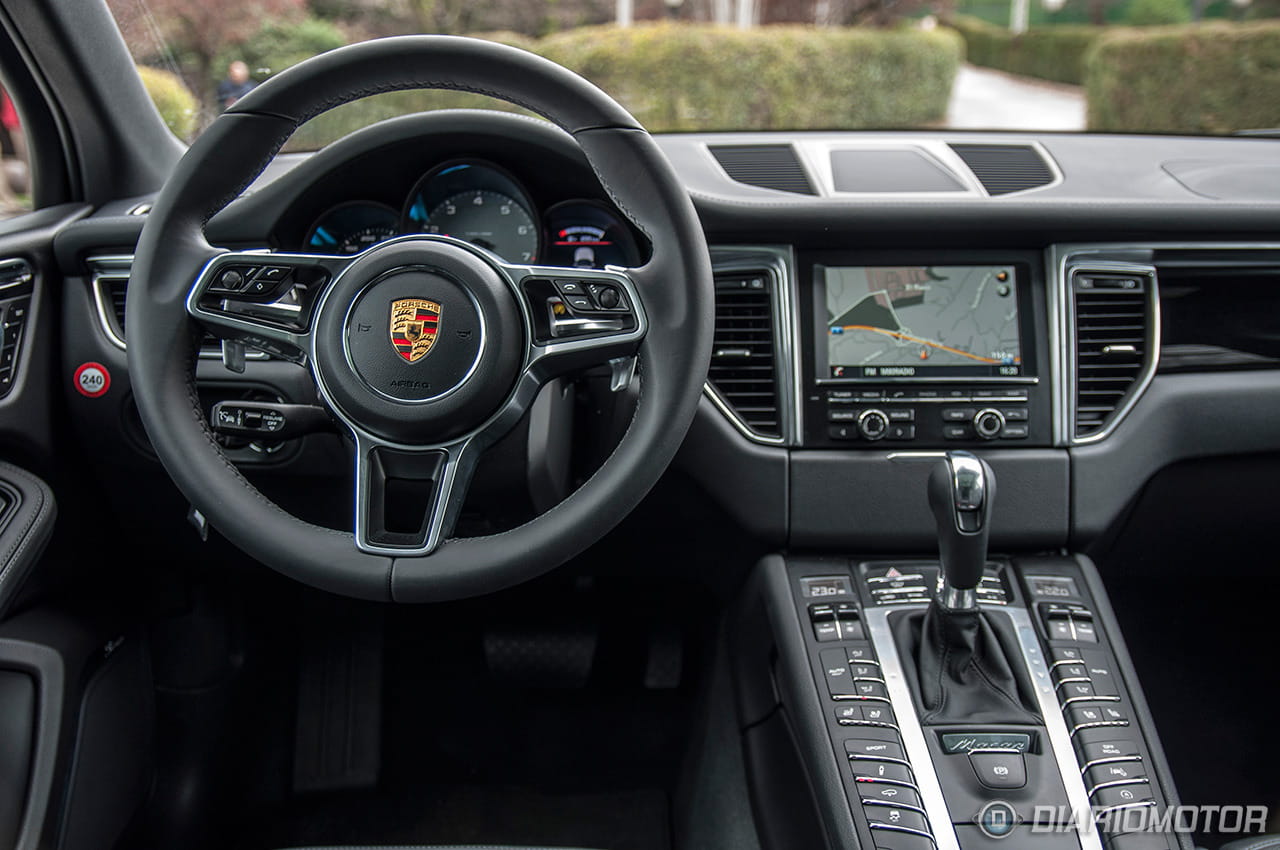 Subes a bordo del Porsche Macan y te sientes como en casa. Probablemente sea lo que pretende Porsche, que sus clientes de 911, Boxster y Cayman se sienten en el Macan y no sufran el shock de encontrarse en el habitáculo de un todocamino. Es cierto que la posición es muy elevada, pero la ergonomía del puesto es excelente, propia de un 911, el volante exactamente el mismo que utiliza el Porsche 918 Spyder y la consola central con la botonera típica de Cayenne y Panamera. La calidad de los materiales sublíme, los tapizados de piel impecables, las inserciones bien escogidas, un Porsche de los pies a la cabeza.