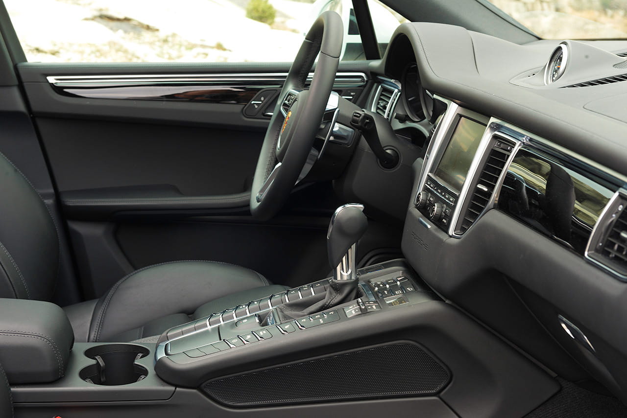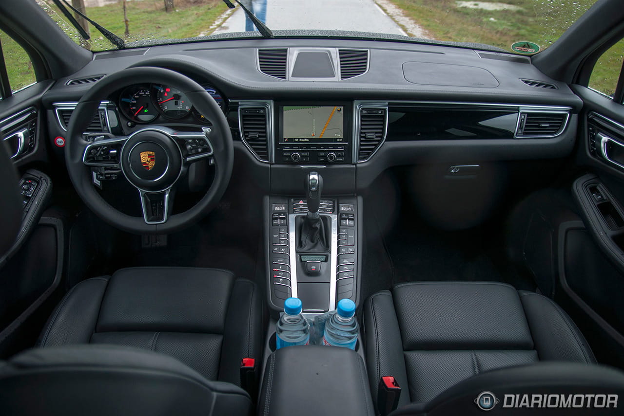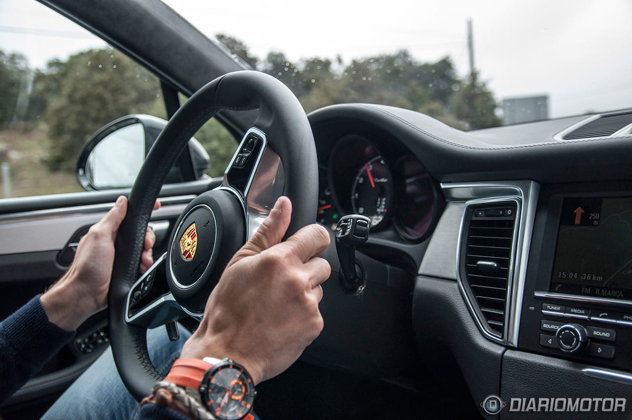 Subes a bordo del Porsche Macan y te sientes como en casa. Probablemente sea lo que pretende Porsche, que sus clientes de 911, Boxster y Cayman se sienten en el Macan y no sufran el shock de encontrarse en el habitáculo de un todocamino. Es cierto que la posición es muy elevada, pero la ergonomía del puesto es excelente, propia de un 911, el volante exactamente el mismo que utiliza el Porsche 918 Spyder y la consola central con la botonera típica de Cayenne y Panamera. La calidad de los materiales sublíme, los tapizados de piel impecables, las inserciones bien escogidas, un Porsche de los pies a la cabeza.