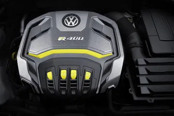 Mecánicamente el Volkswagen Golf R 400 queda en manos de un bloque 2.0 TSI de 4 cilindros que desarrolla una potencia de 400 caballos a 7.200 rpm, consiguiendo así una potencia específica de 200 caballos por litro de cubicaje.