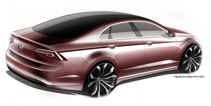 Creación del equipo de diseño de Klaus Bischoff, diseñador jefe de la marca, estos primeros bocetos de este modelo conceptual nos revelan líneas rectas y cierta dosis de músculo desde los pasos de rueda. Destaca también su parrilla frontal, que parece seguir los pasos de la parrilla del Golf pero con un diseño más inclinado, reforzando sus aires de coupé, así como una interesante propuesta de ópticas traseras acompañadas por unas salidas de escape bien integradas y una protuberancia aerodinámica sobre el portón del maletero.