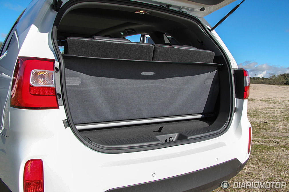 Al utilizar la tercera fila de asientos, el maletero del Sorento queda reducido a poco más de 100 litros de volumen y el espacio que se aprecia en esta imagen.