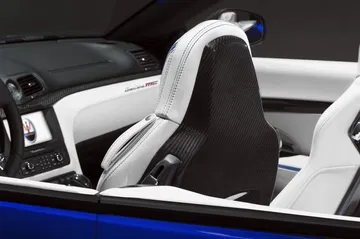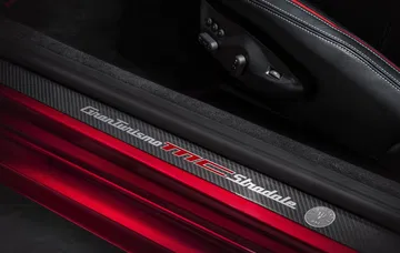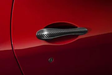 Las llantas lucen el medallón del centenario de la marca en la parte central, contando con dos tonos diferentes y aparecen además unos umbrales de las puertas en fibra de carbono (con el logo también del centenario) a juego con la parte posterior de los asientos y el aplique del salpicadero además de en los retrovisores, tiradores de las puertas y el alerón posterior.