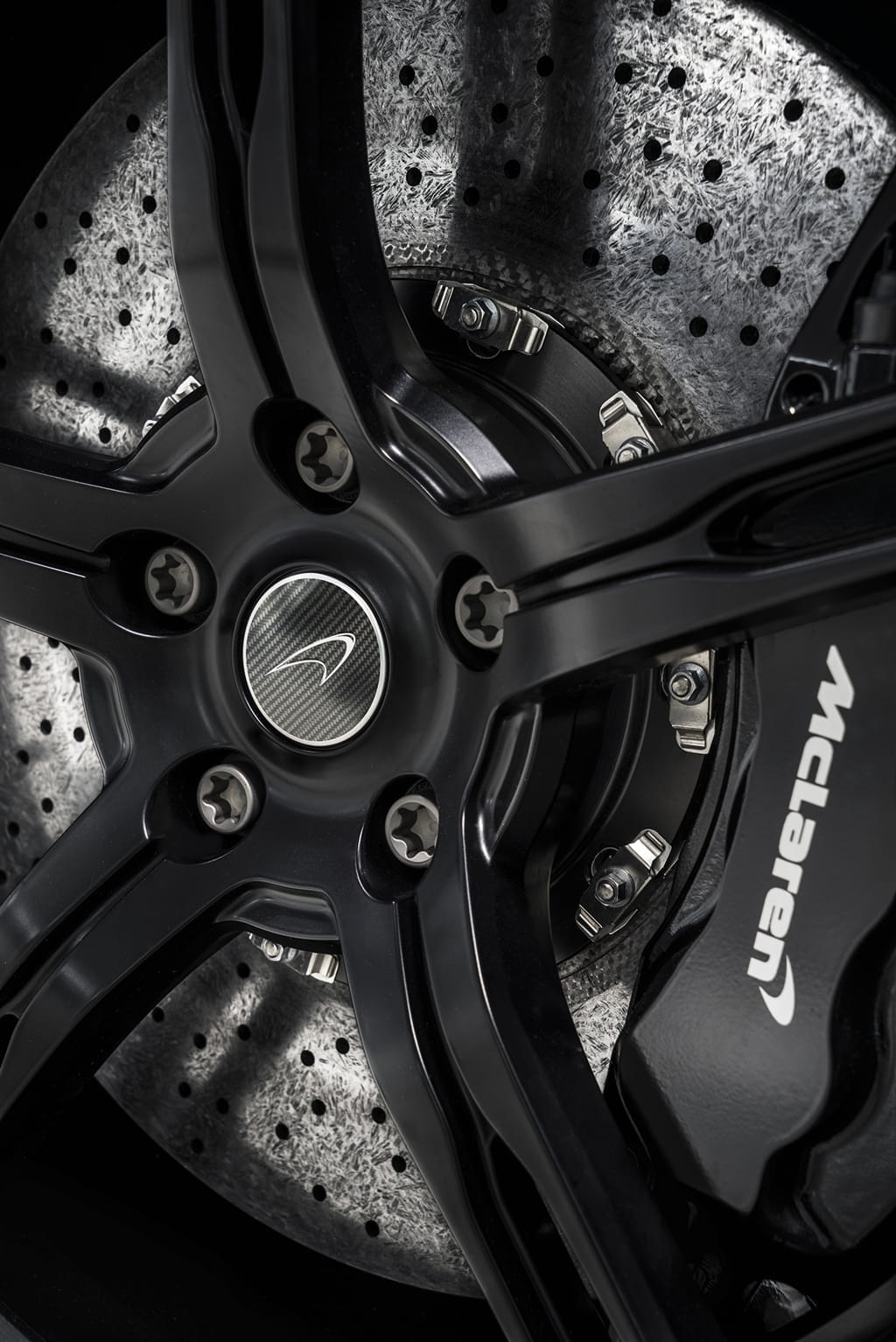 En el exterior nos encontramos con una nueva pintura disponible en exclusiva en el catálogo de MSO. La denominación de esta variedad cromática es Agrigan Black y combina el color negro con un tratamiento especial de partículas metálicas en color rojo que consigue un exquisito acabado final. Las llantas también reciben un nuevo tratamiento, mientras que los diferentes apliques en fibra de carbono en el exterior y en la cubierta motor realzan el carácter deportivo del biplaza de Woking.