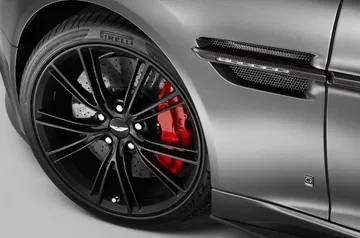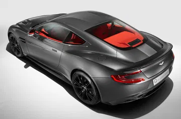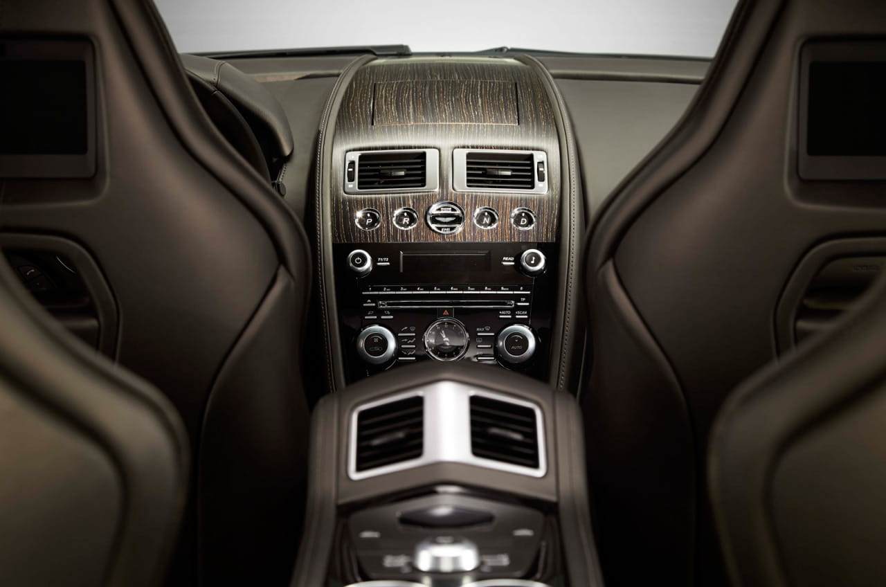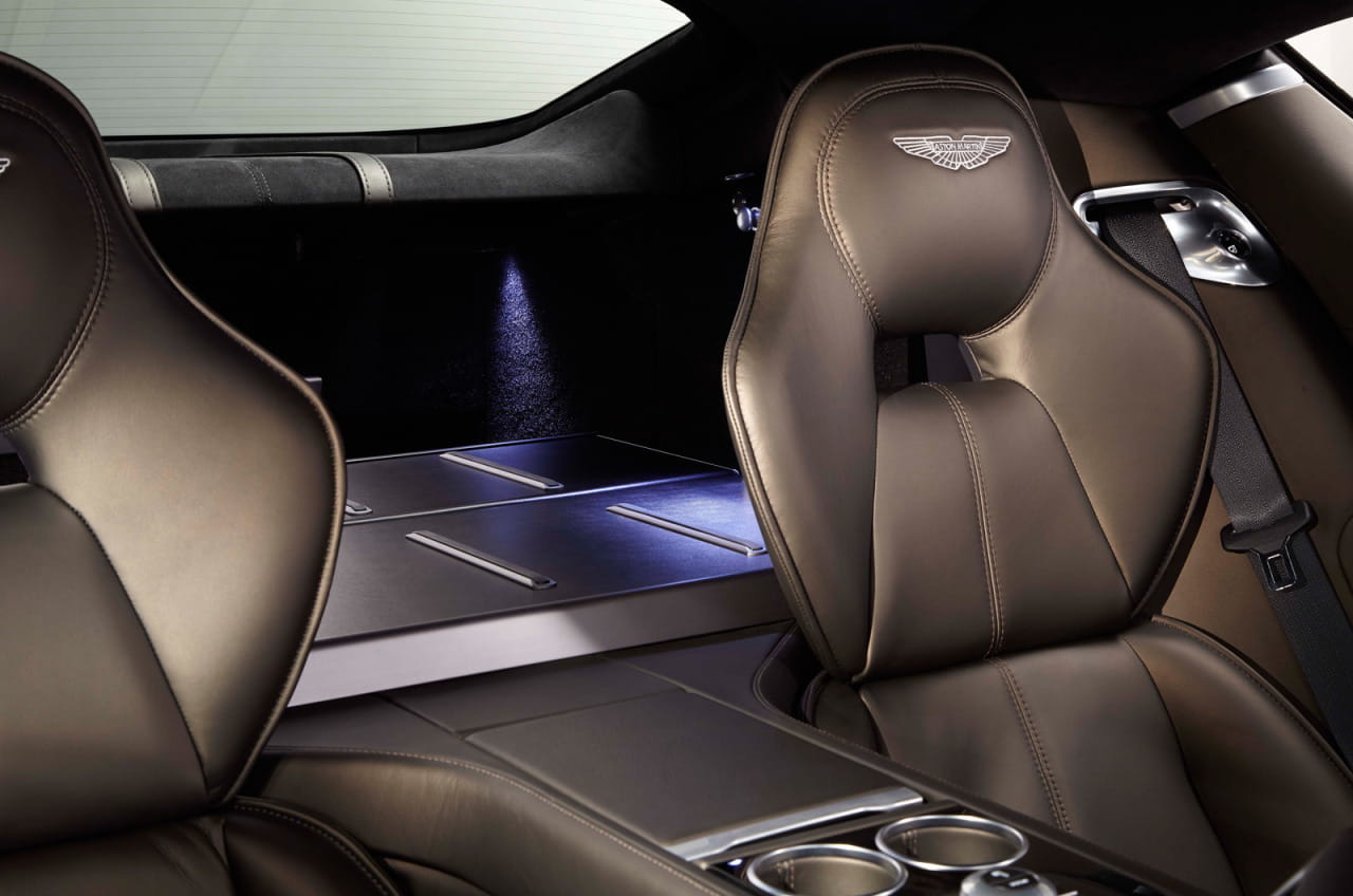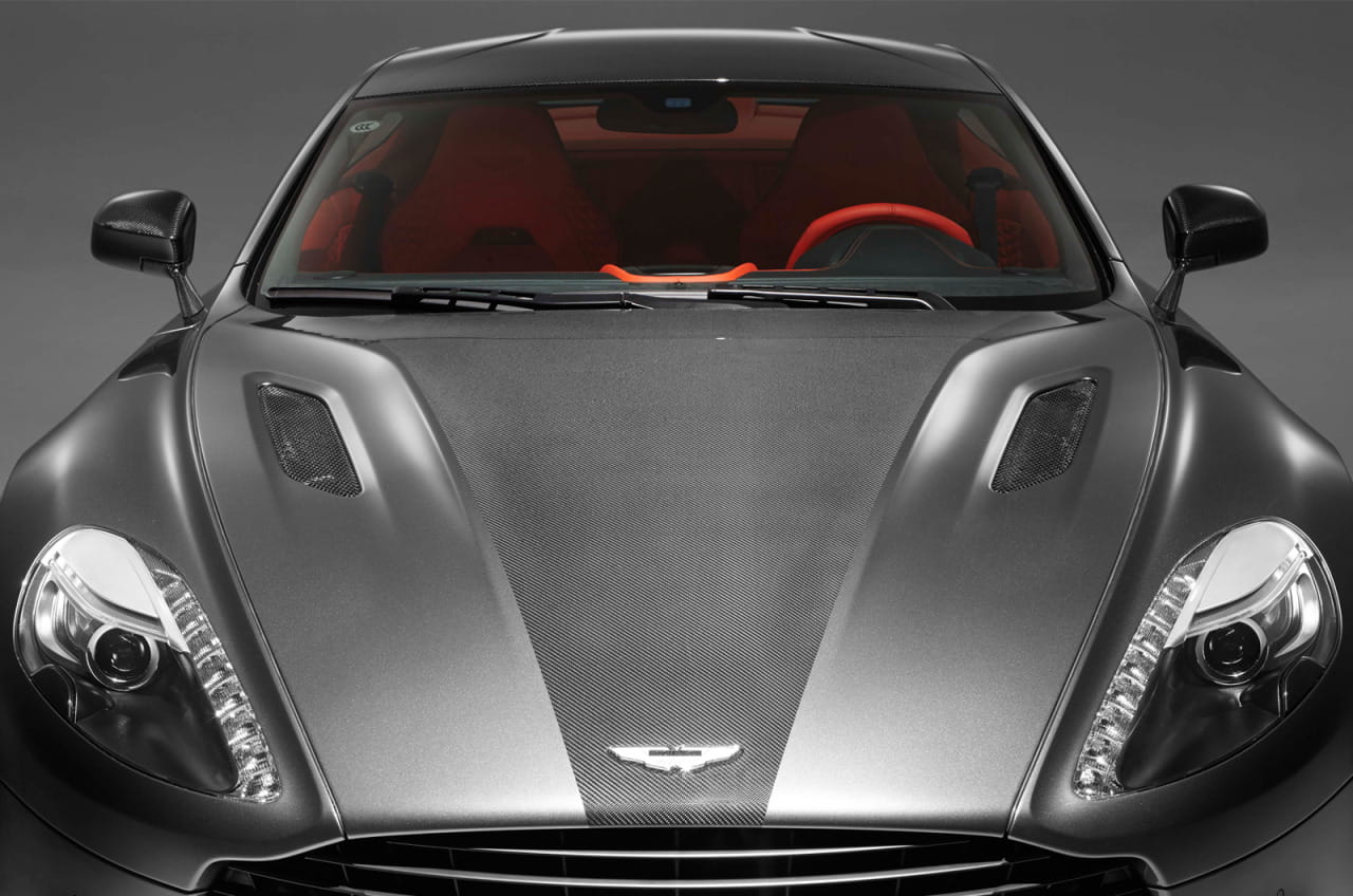 En el caso del Vanquish se incide en una mayor deportividad con un acabado exterior bitono en gris contrastado por una franja de fibra de carbono.