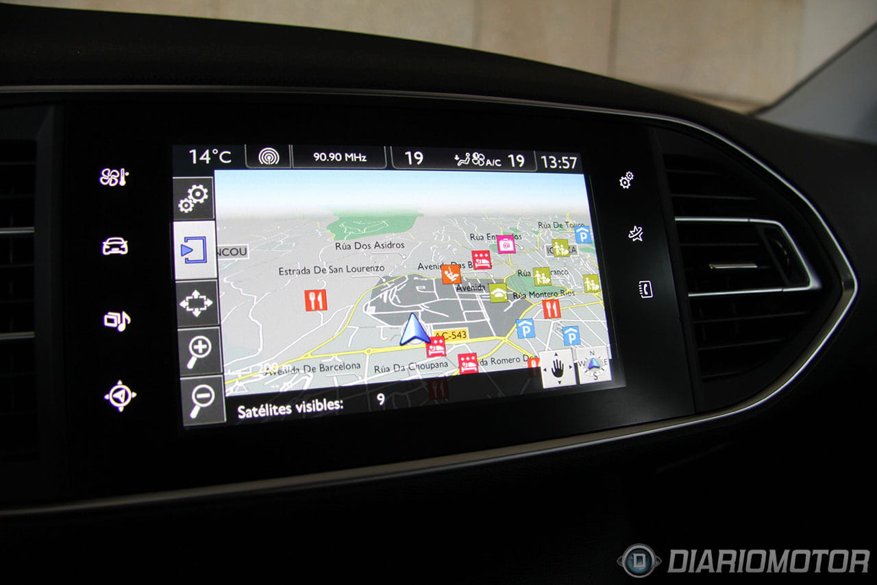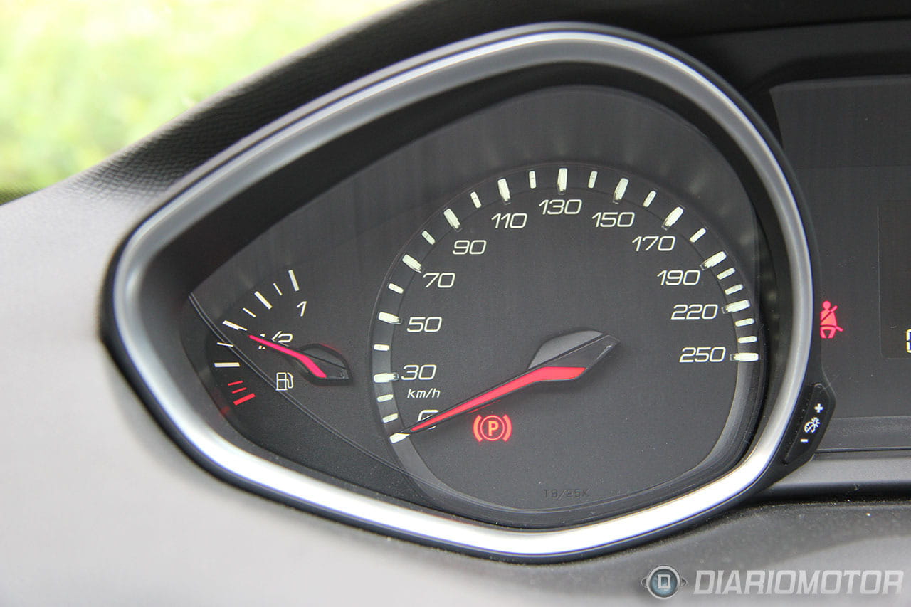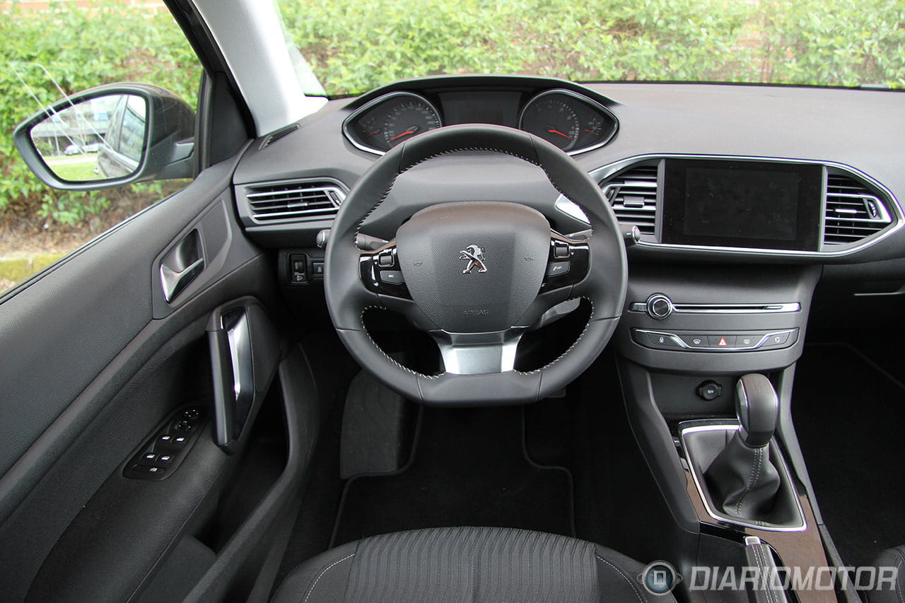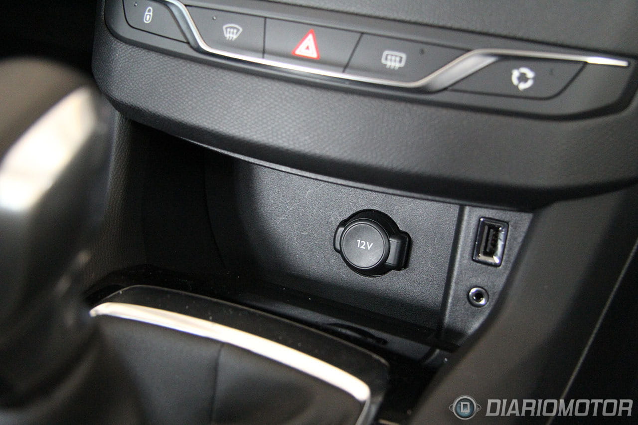 ¿Detalles del interior para los que no solo miran sino que tocan y usan? En el 308 se echan en falta sitios donde dejar la cartera, el móvil, etc. Están los huecos de las puertas, la guantera del copiloto, la guantera central oculta en el reposabrazos, un pequeño espacio delante de la palanca y el sitio exacto para una lata de refrescos. Parecen muchos si los listas pero en el día a día se quedan incluso escasos. Con respecto al reposabrazos central delantero hay bastante que decir: no se eleva mucho para usarlo con comodidad y hay que tener cuidado cuando se vuelva a dejar en su sitio, su muelle es muy abrupto y te puedes hacer daño en las manos (verídico).