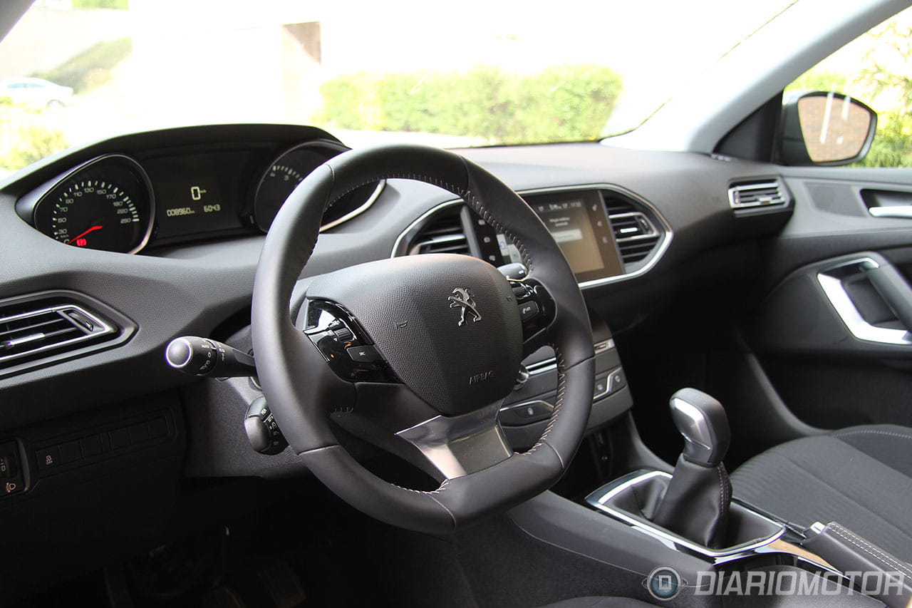 Siguiendo con la revisión del interior sorprende la gran calidad que tiene para ser un acabado intermedio de gama. Salvo un par de plásticos y las manetas de las puertas los acabados son buenos, el salpicadero es blando, los botones – los pocos que tiene – son buenos, la piel del volante tiene un tacto de un muy gran nivel, etc. En este aspecto el 308 aprueba con nota.