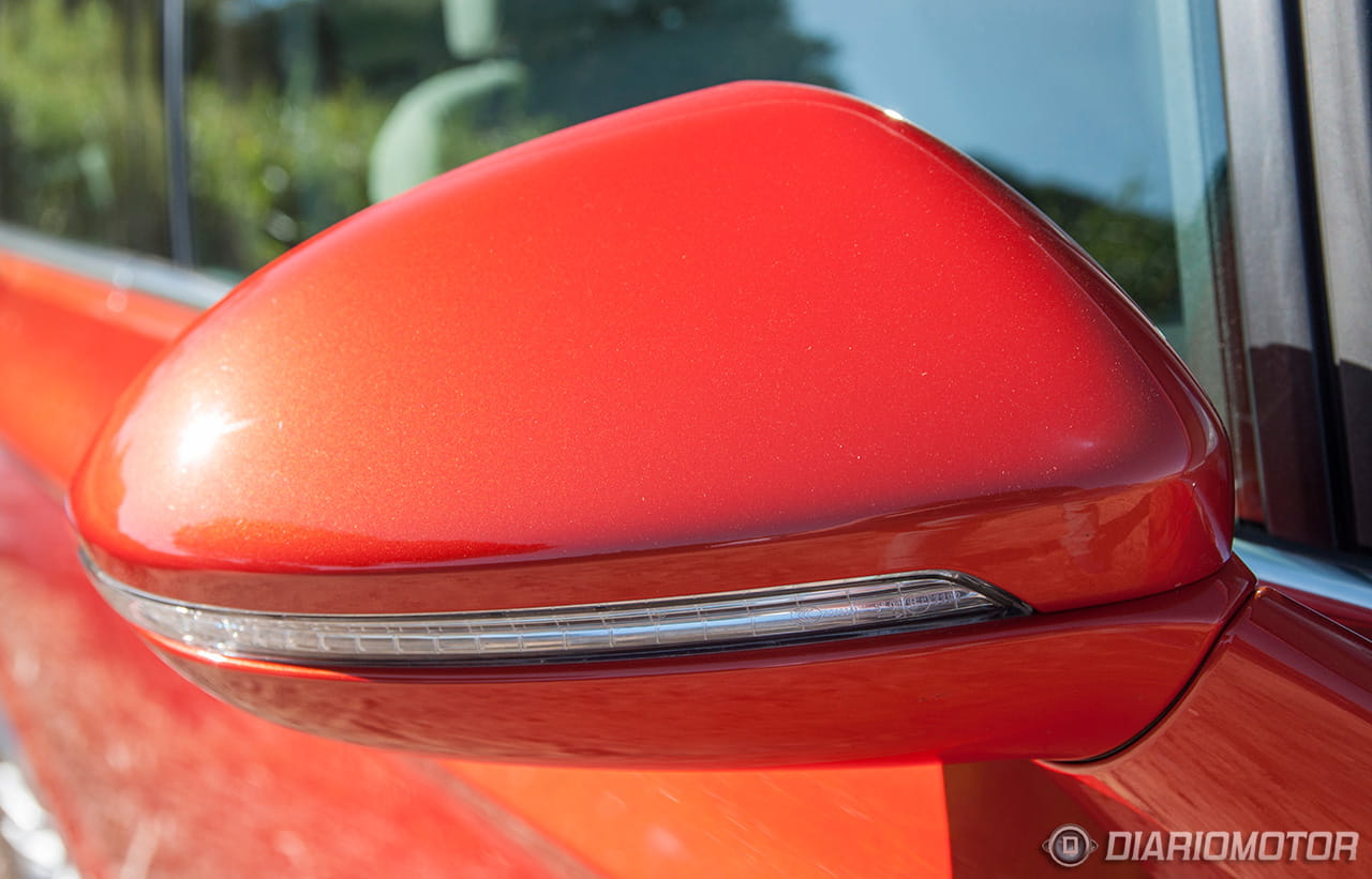 Aunque sea difícil de describir con palabras e incluso de mostrároslo con imágenes, por la cantidad de matices que adquiere con la luz este acabado de pintura, el naranja Habanero – así lo ha llamado Volkswagen – será uno de los tonos más llamativos del nuevo Golf Sportsvan. Puedo deciros que se asemeja bastante al tono especial estrenado por el Ford Fiesta ST, un anaranjado con un tratamiento especial que con la luz del sol hace que se torne en brillos dorados.