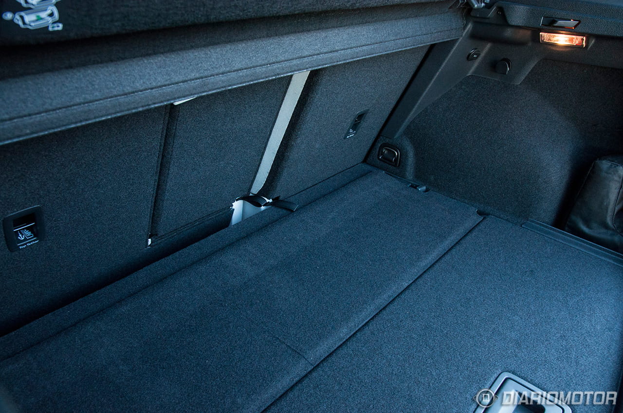 El maletero, incluso con los asientos traseros en su posición más retrasada, es amplio y aprovechable, alcanzando un volumen máximo de 590 litros. Cuenta además con un doble fondo en el que podemos alojar una rueda de repuesto o el equipo de sonido, así como multitud de objetos de poco tamaño. Esta bandeja puede colocarse en diferentes posiciones y cuenta con un clip que nos permite sujetarla en su posición de apertura para cargar objetos en el doble fondo.