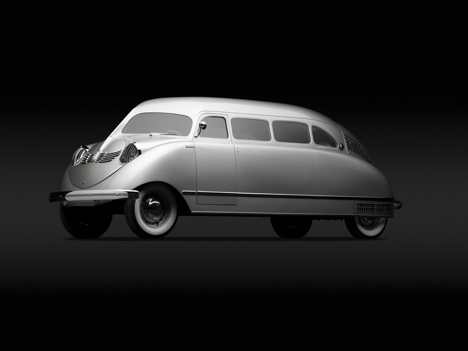 La selección de coches de la exposición ofrece un repaso a las visiones del futuro en el automóvil que podemos agrupar en tres periodos. Los años 30 fueron los de la invención del urbanismo moderno, el momento en que las ideas del Movimiento Moderno en arquitectura comenzaron a plasmarse en las ciudades con más entusiasmo que reflexión y el automóvil como centro. Ciudades animadas por una euforia tecnológica que bien se plasma en los planes y edificios de Le Corbusier, Sant Elia y Matte – Trucco. Por eso los coches de la época, con una industria todavía en sus primeras etapas, se replanteaban constantemente su concepto, su estructura y su cometido. De ese periodo “Dream Cars” rescata algunos coches esenciales. La preocupación aerodinámica se percibe en cada detalle del monumental Voisin C25 Aerodyne de 1934 (inspirado por la experiencia de Gabriel Voisin en aviación) y por una recreación moderna del perdido Bugatti Type 57 Aerolithe de 1935. El atrevido y conocido Stout Scarab de 1936 representa esa exploración del transporte en términos de eficiencia energética de la que participaban el extravagante Alfa Ricotti o el Dymaxion de Buckminster – Fuller.