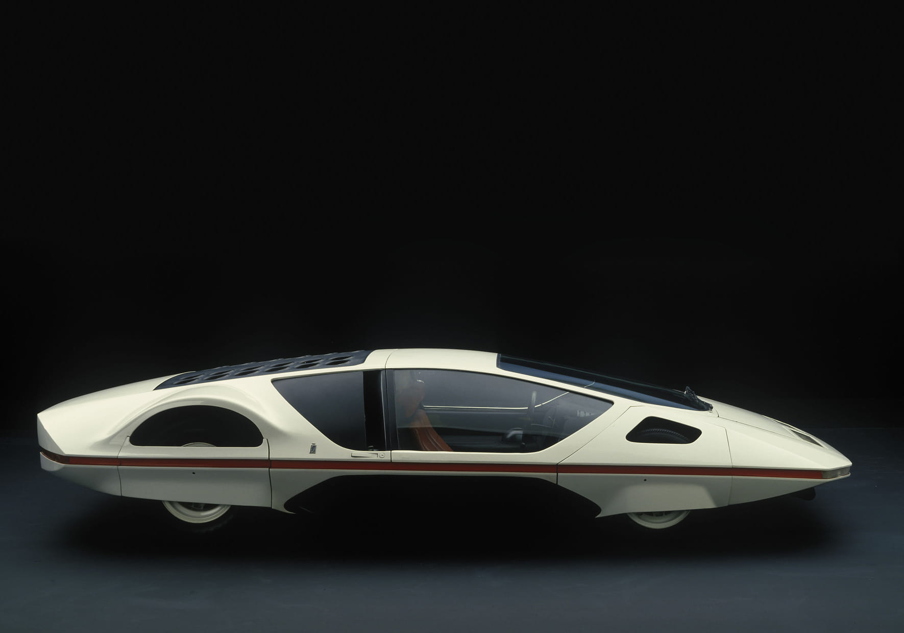El Lancia Stratos HF Zero (1970) diseñado por Marcello Gandini para Bertone es una obra maestra de enorme trascendencia. El Stratos inspiró no sólo al admirado Lancia de rallyes, sino que avanza las líneas del deportivo más influyente de la década, el extraplano Lamborghini Countach presentado como prototipo sólo un año más tarde. El otro ejemplo es el extraterrestre Pininfarina Módulo (1970), un ejercicio de diseño muy inteligente con una estética absolutamente visionaria. El Módulo era un ensayo con mucha inteligencia puesta en el diseño del espacio interior, y con un aspecto exterior digno de “La Fuga de Logan“.