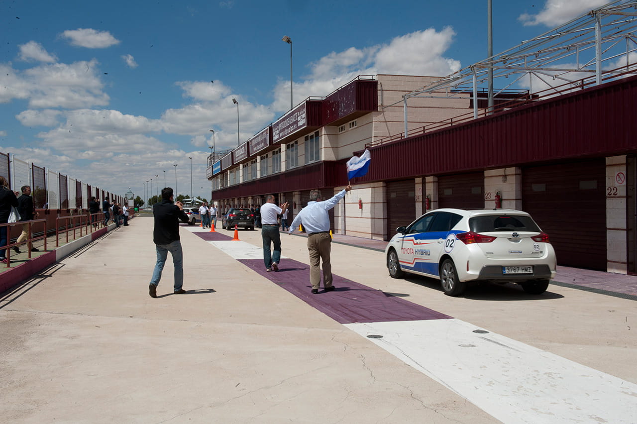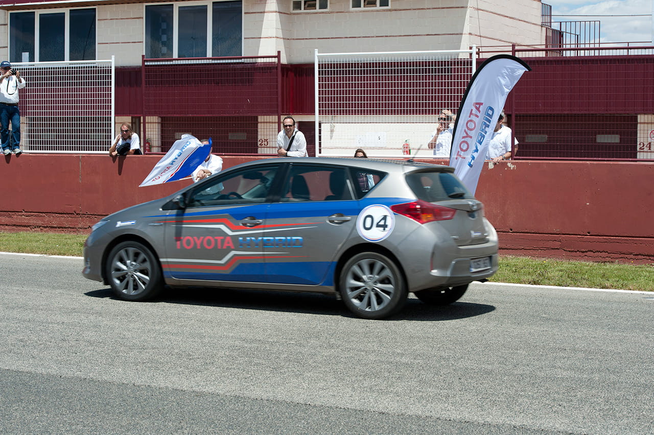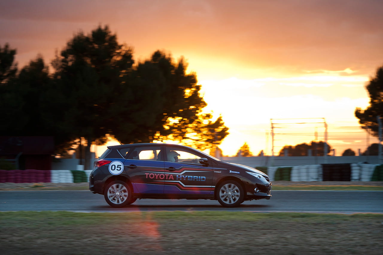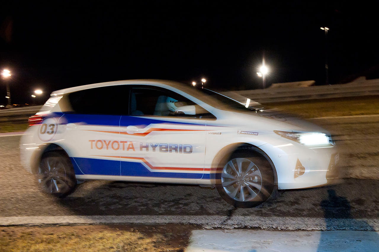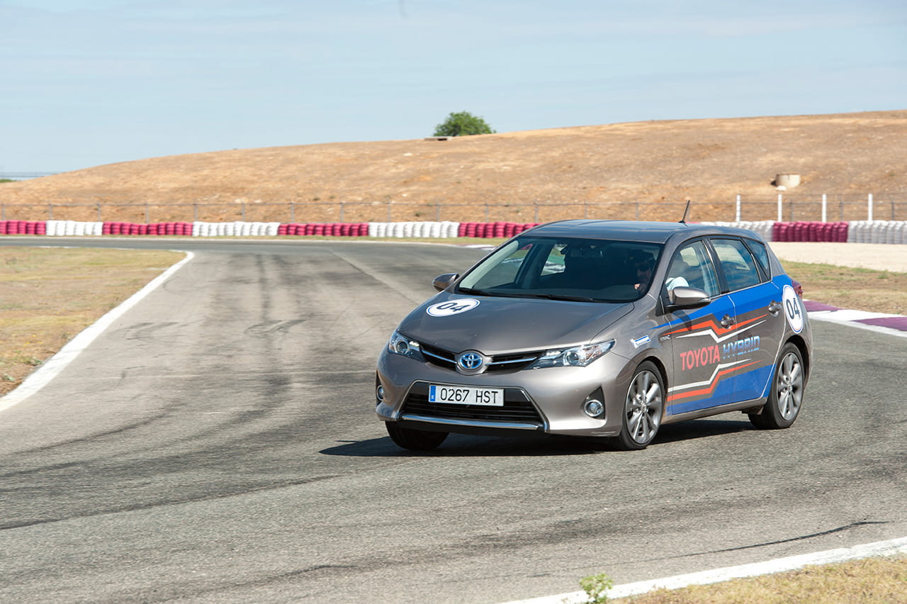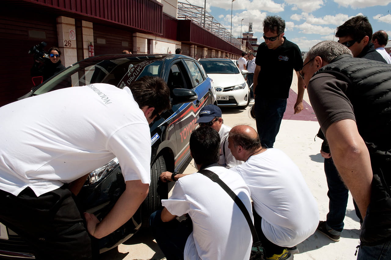 Toyota escogió uno de sus últimos lanzamientos híbridos para esta causa, el nuevo Toyota Auris Hybrid. Nos llenaron el depósito y nos dieron cuatro garrafas con veinte litros de gasolina para distribuir como quisiéramos. Con ellos, aproximadamente 125 litros en total, tendríamos que rodar durante 24 horas en circuito y, no solo eso, ser los más rápidos, los que más vueltas recorriéramos en ese tiempo, para ganar.