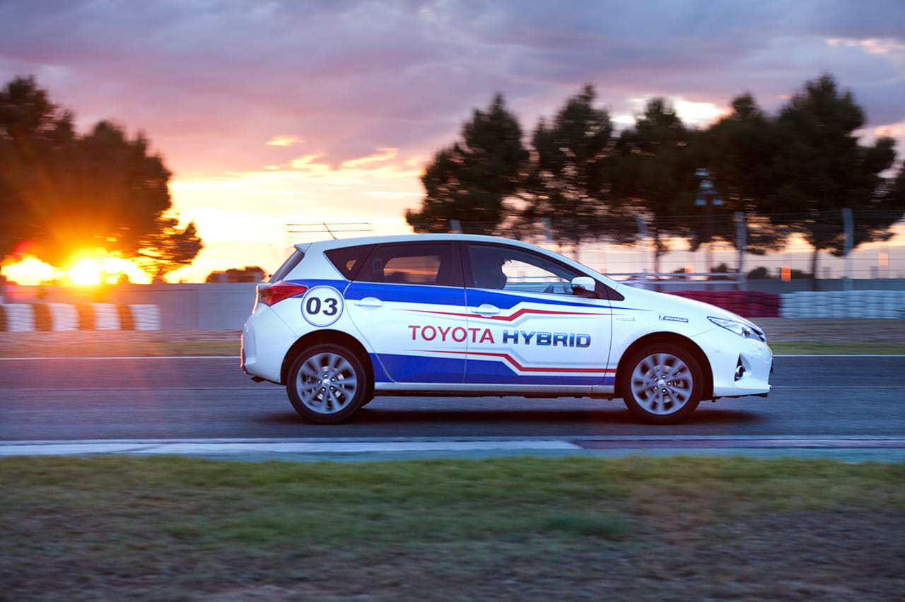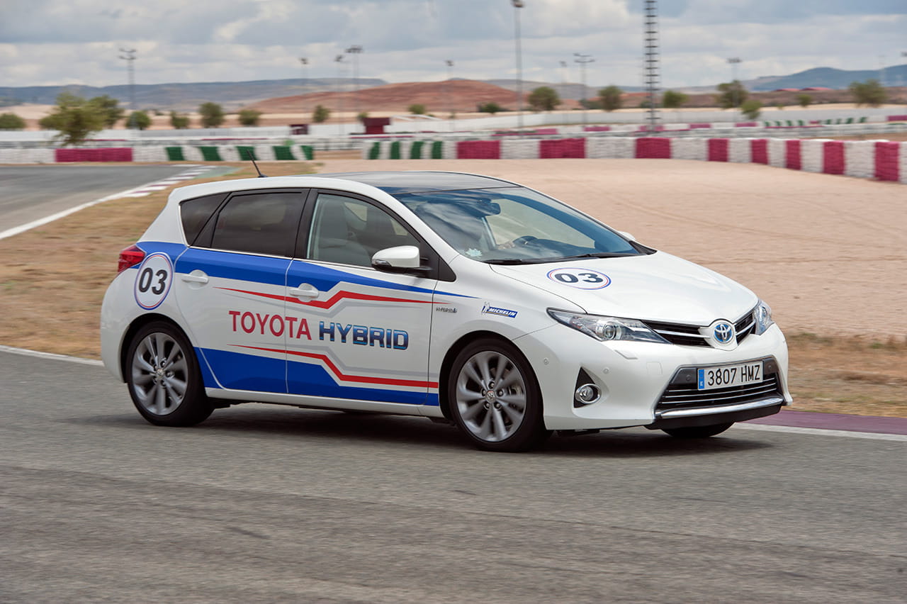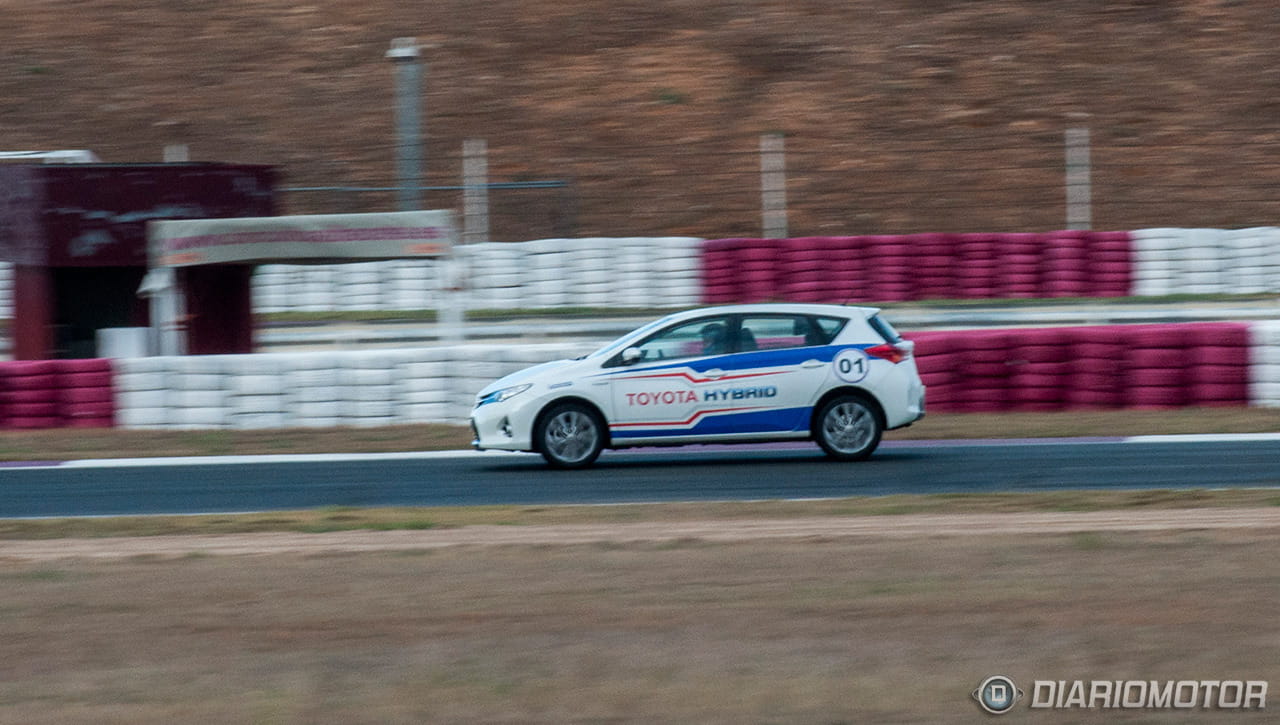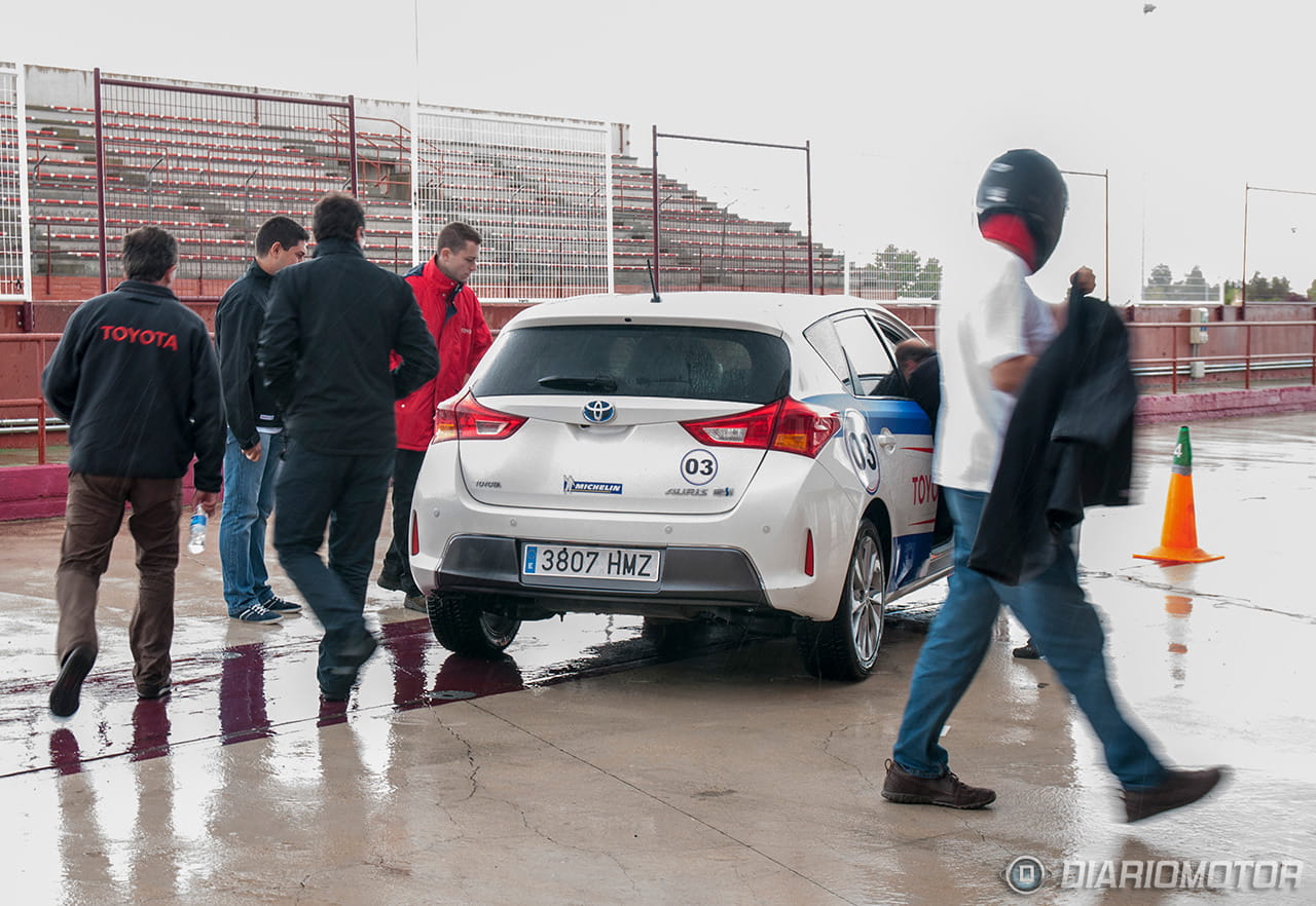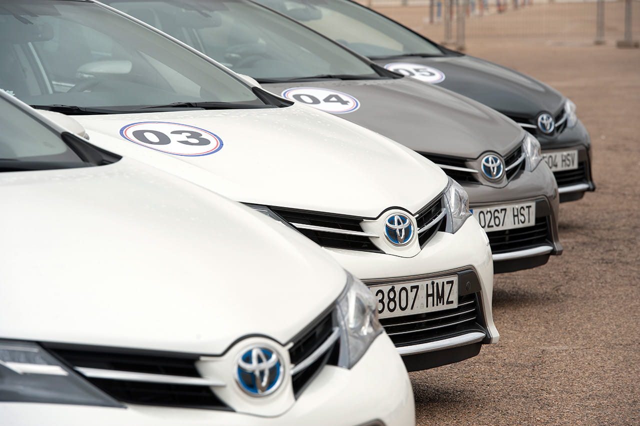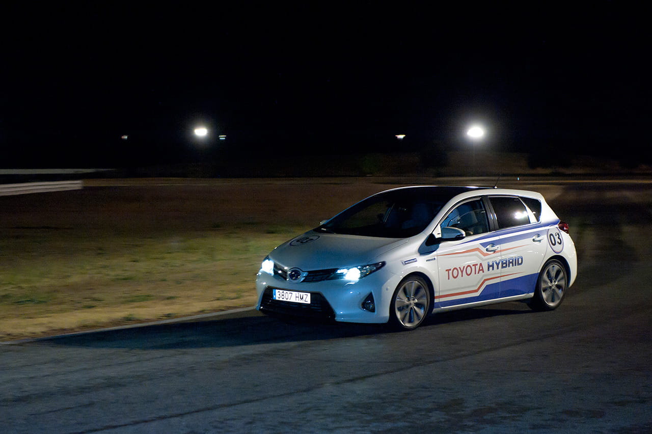 Toyota escogió uno de sus últimos lanzamientos híbridos para esta causa, el nuevo Toyota Auris Hybrid. Nos llenaron el depósito y nos dieron cuatro garrafas con veinte litros de gasolina para distribuir como quisiéramos. Con ellos, aproximadamente 125 litros en total, tendríamos que rodar durante 24 horas en circuito y, no solo eso, ser los más rápidos, los que más vueltas recorriéramos en ese tiempo, para ganar.