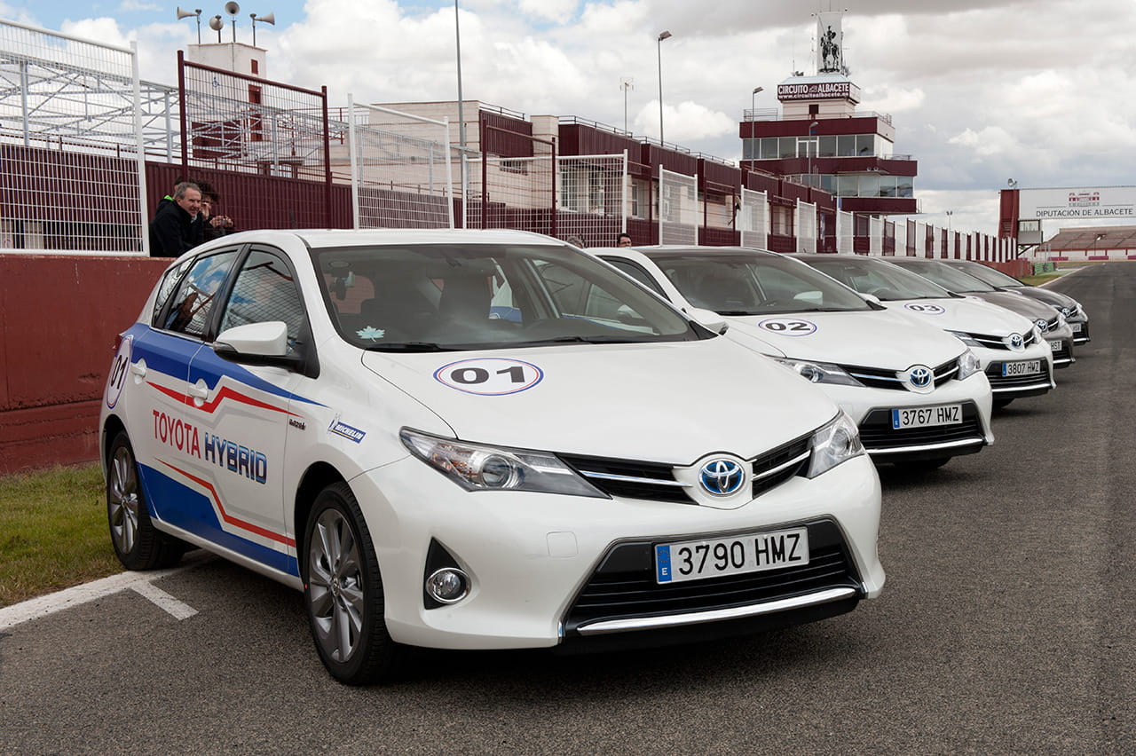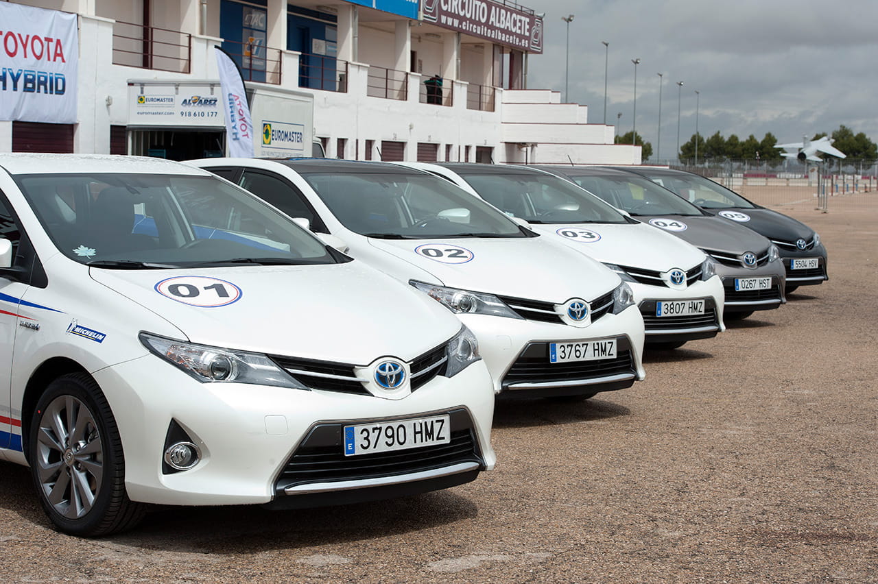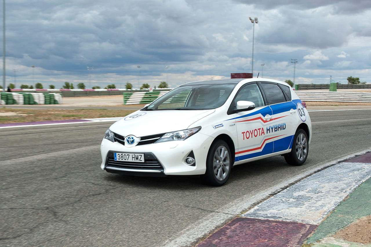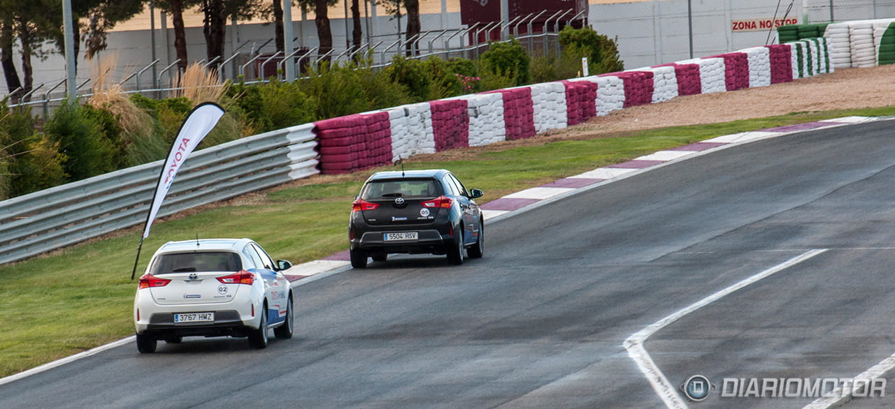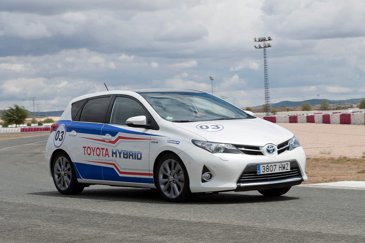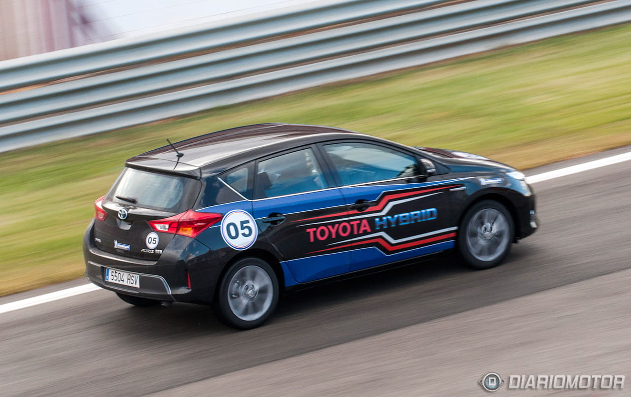 Toyota escogió uno de sus últimos lanzamientos híbridos para esta causa, el nuevo Toyota Auris Hybrid. Nos llenaron el depósito y nos dieron cuatro garrafas con veinte litros de gasolina para distribuir como quisiéramos. Con ellos, aproximadamente 125 litros en total, tendríamos que rodar durante 24 horas en circuito y, no solo eso, ser los más rápidos, los que más vueltas recorriéramos en ese tiempo, para ganar.