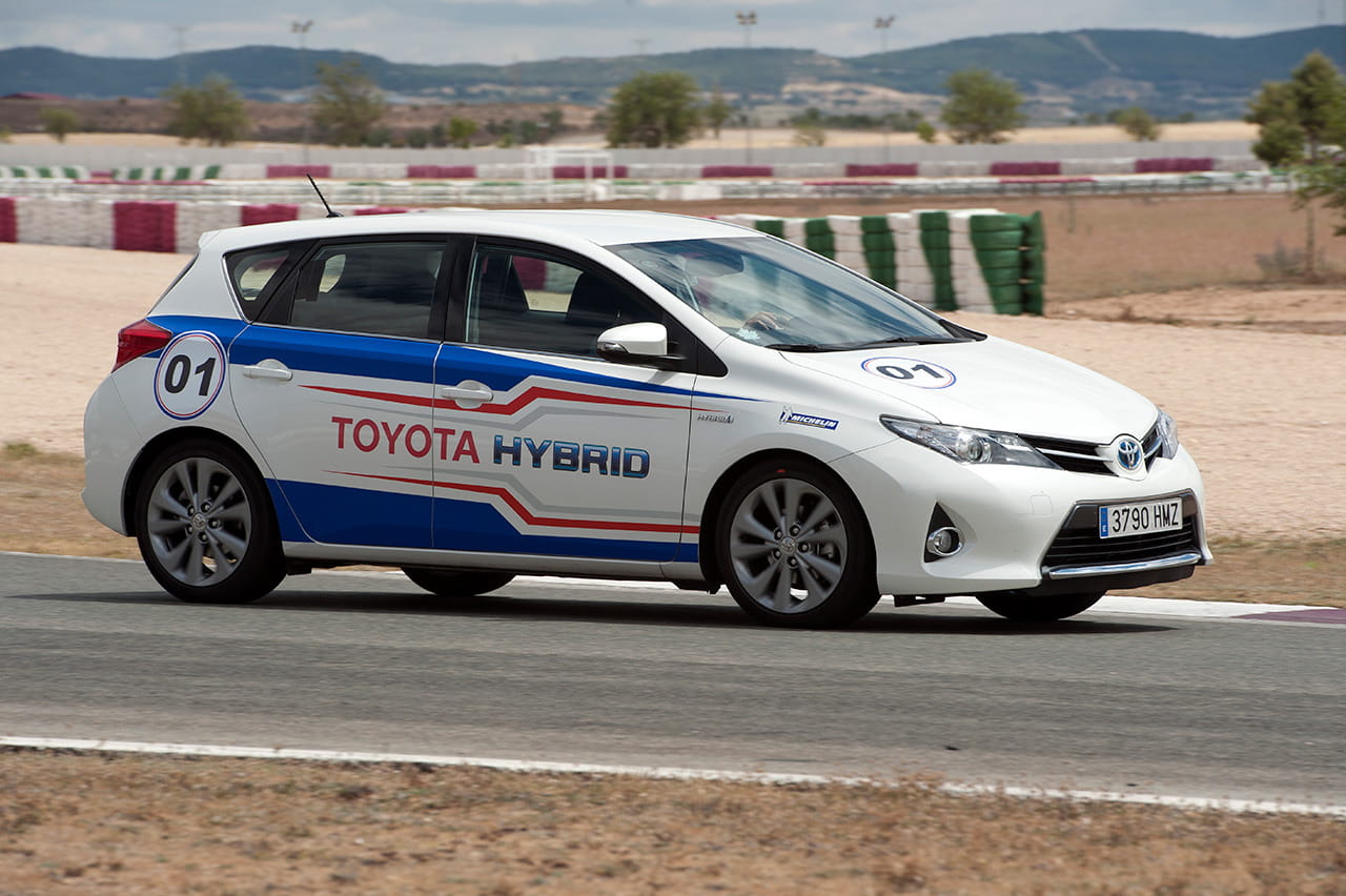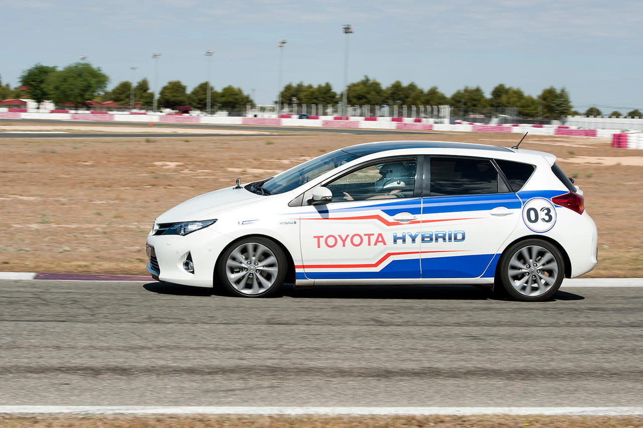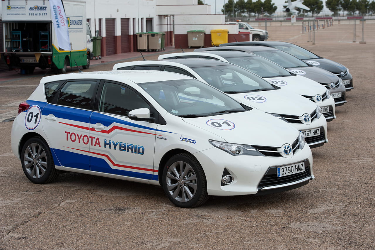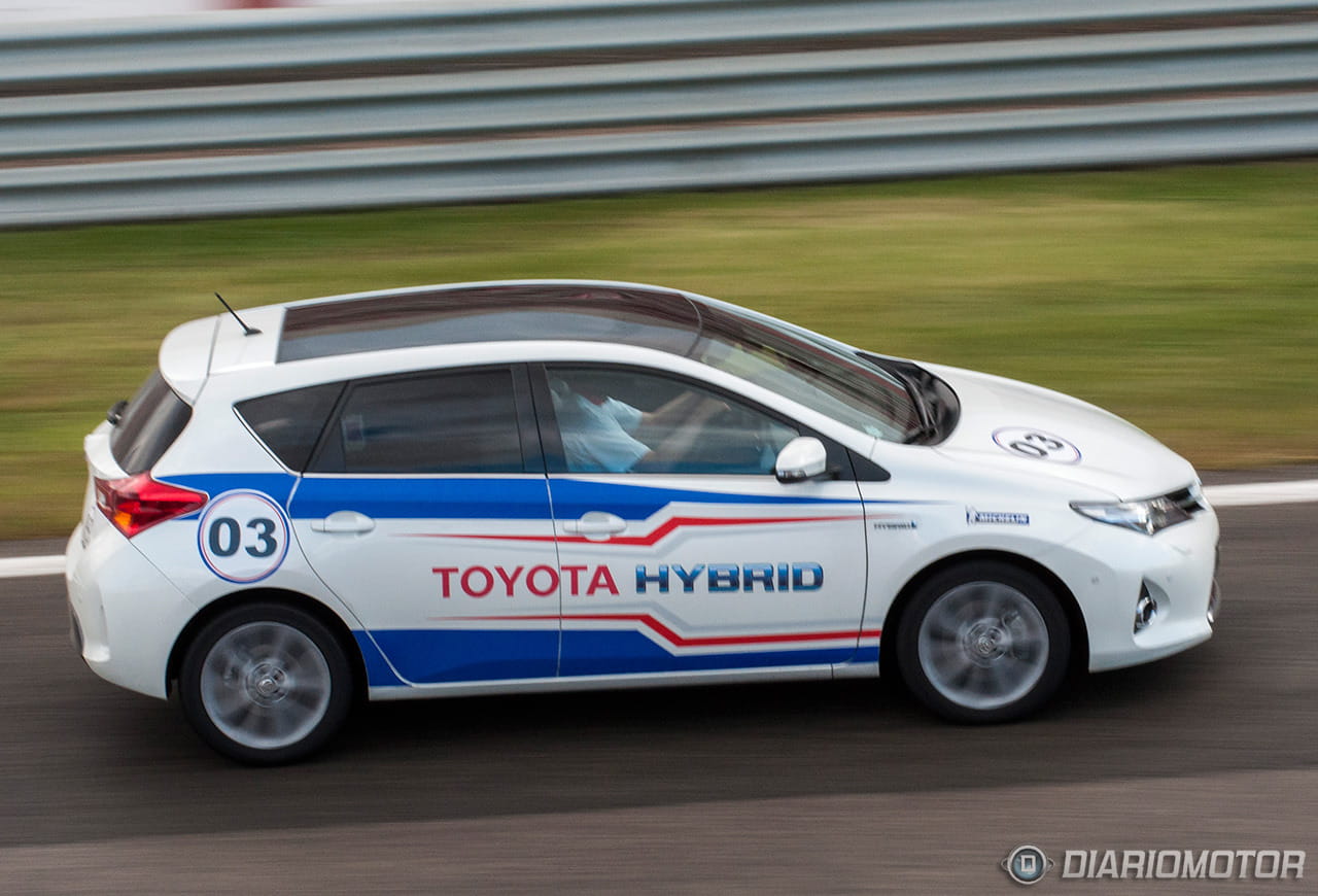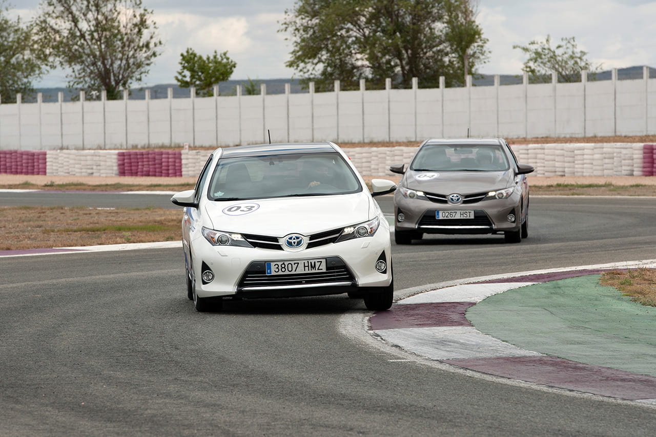 Toyota escogió uno de sus últimos lanzamientos híbridos para esta causa, el nuevo Toyota Auris Hybrid. Nos llenaron el depósito y nos dieron cuatro garrafas con veinte litros de gasolina para distribuir como quisiéramos. Con ellos, aproximadamente 125 litros en total, tendríamos que rodar durante 24 horas en circuito y, no solo eso, ser los más rápidos, los que más vueltas recorriéramos en ese tiempo, para ganar.