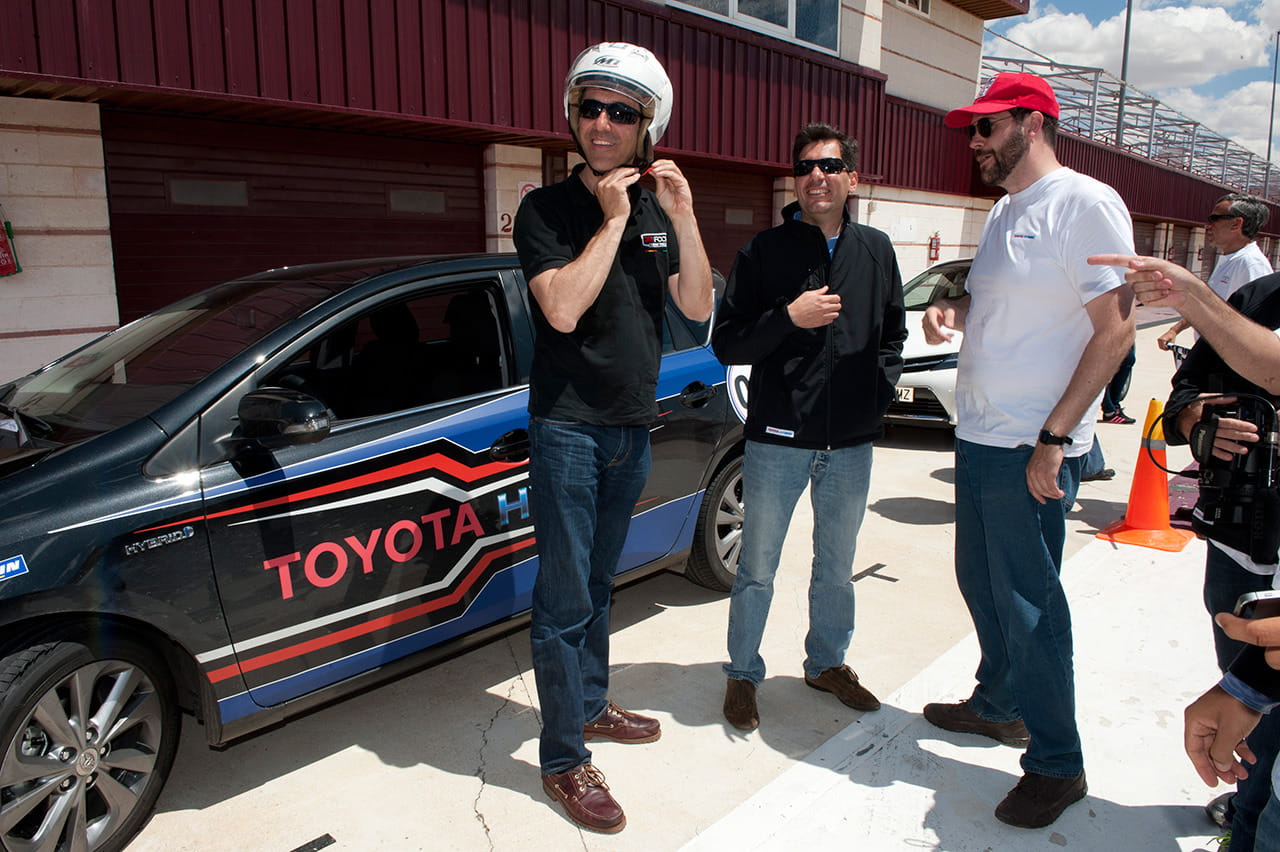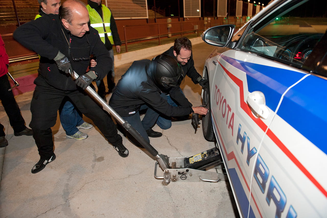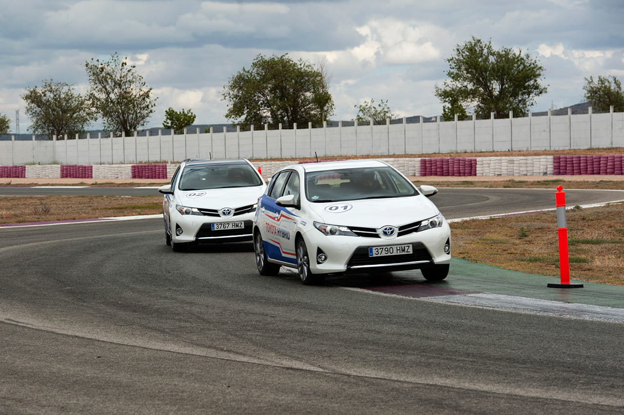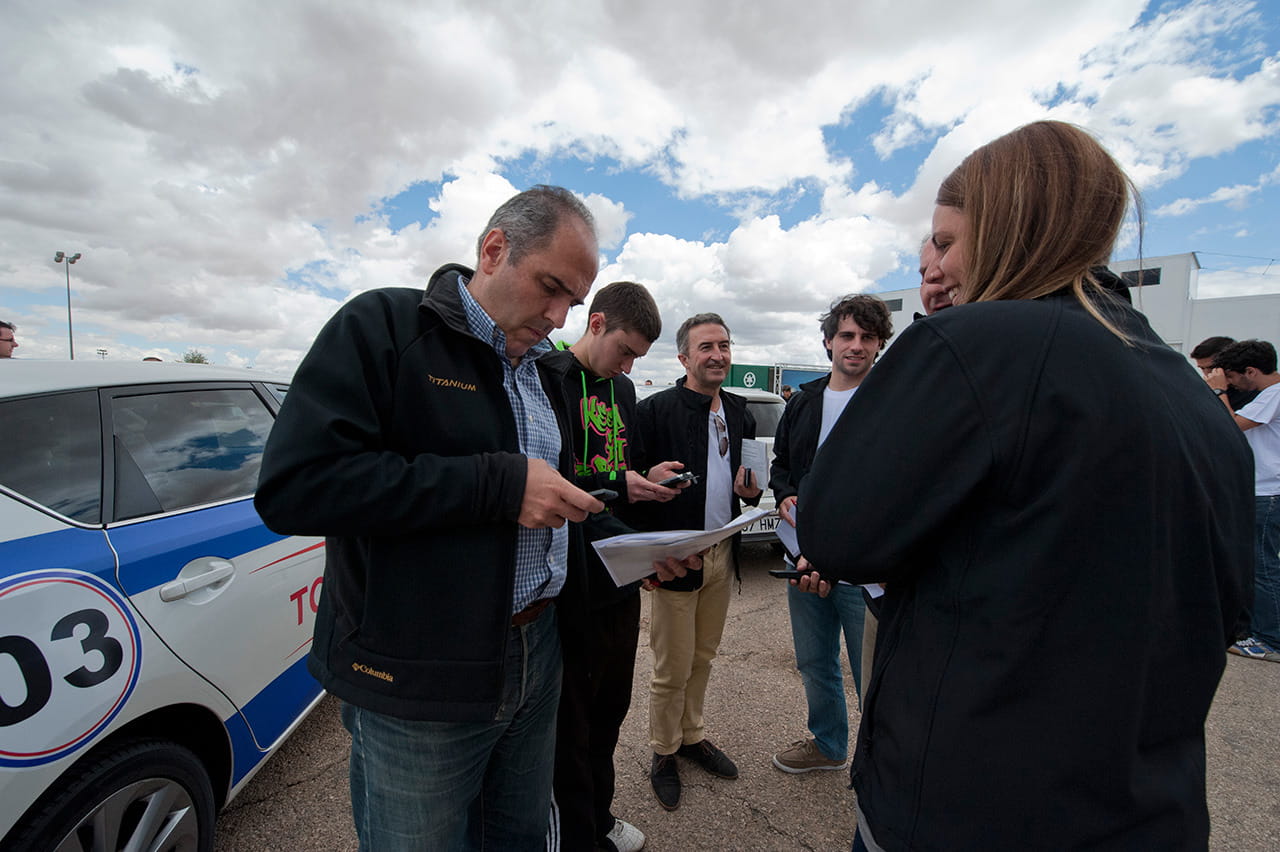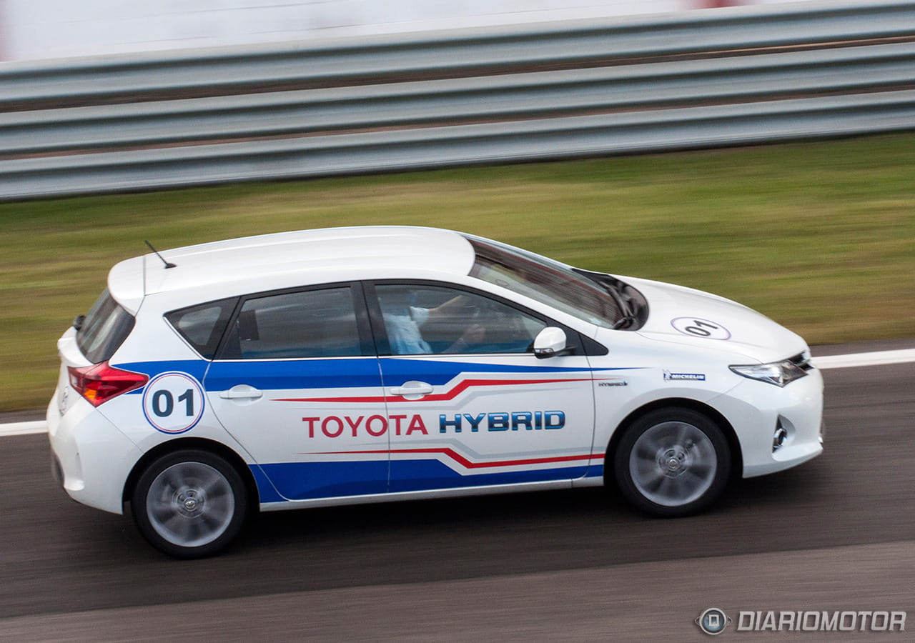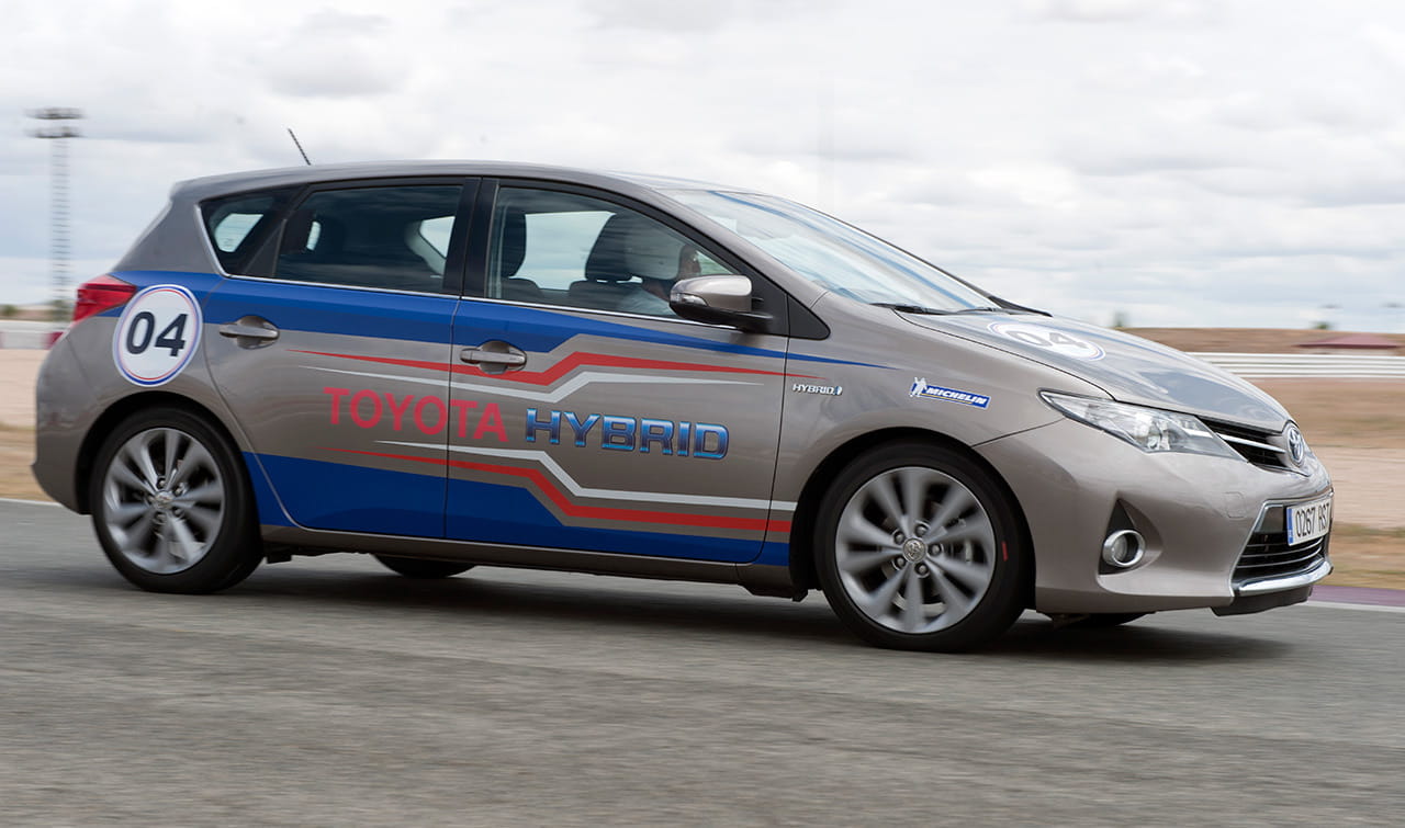 Toyota escogió uno de sus últimos lanzamientos híbridos para esta causa, el nuevo Toyota Auris Hybrid. Nos llenaron el depósito y nos dieron cuatro garrafas con veinte litros de gasolina para distribuir como quisiéramos. Con ellos, aproximadamente 125 litros en total, tendríamos que rodar durante 24 horas en circuito y, no solo eso, ser los más rápidos, los que más vueltas recorriéramos en ese tiempo, para ganar.