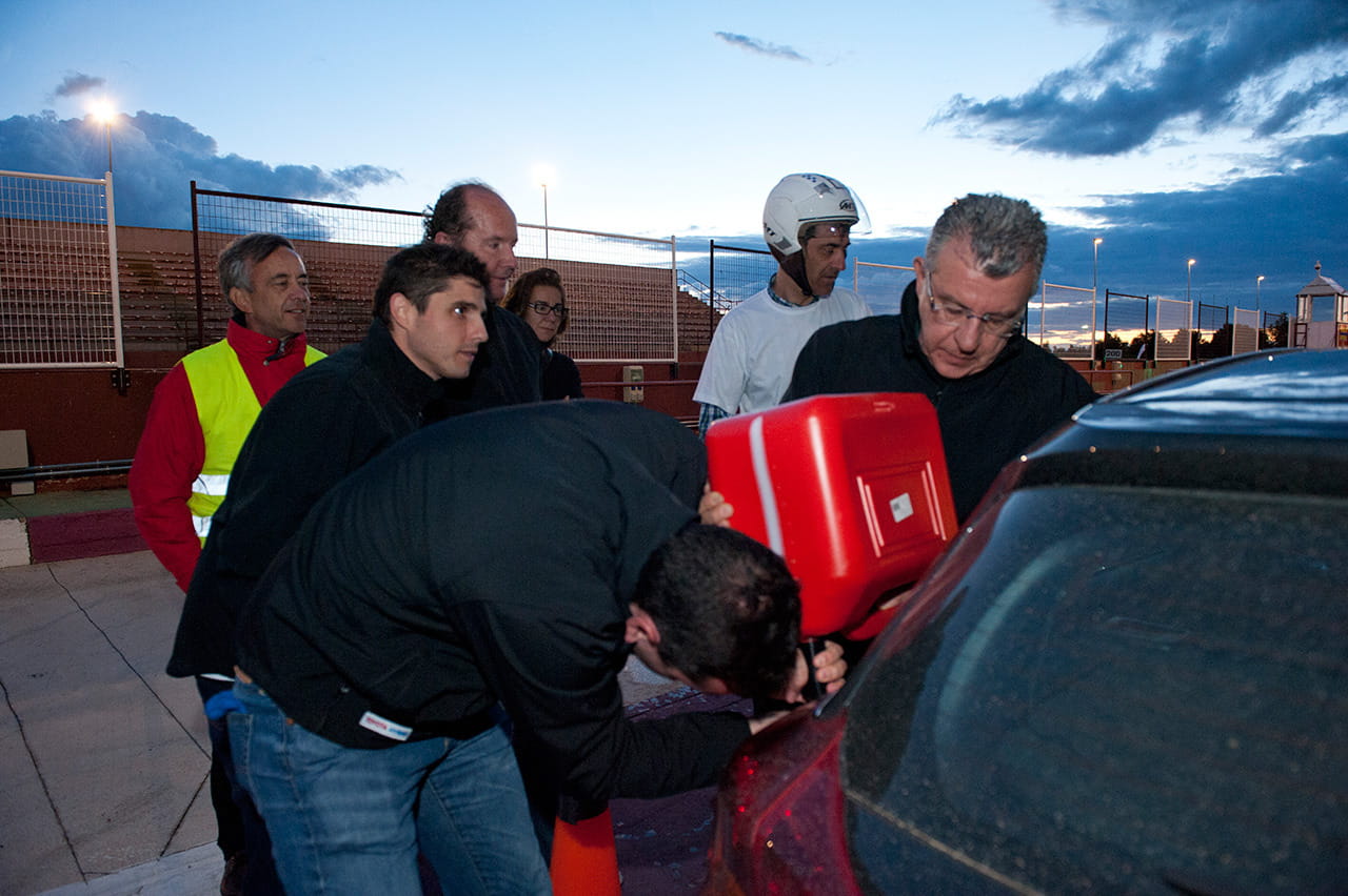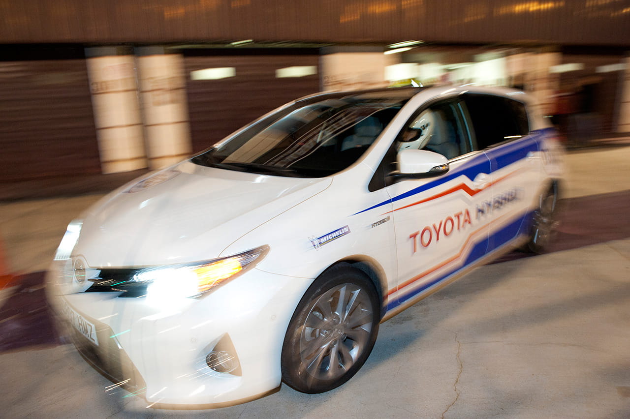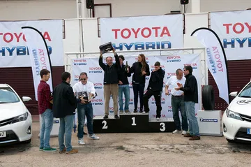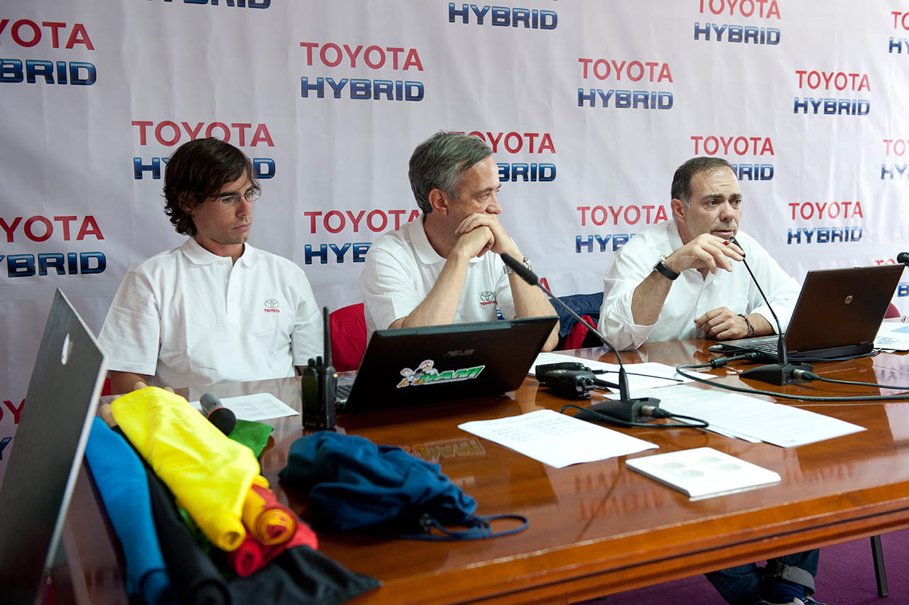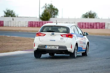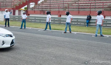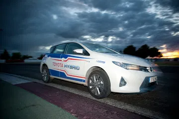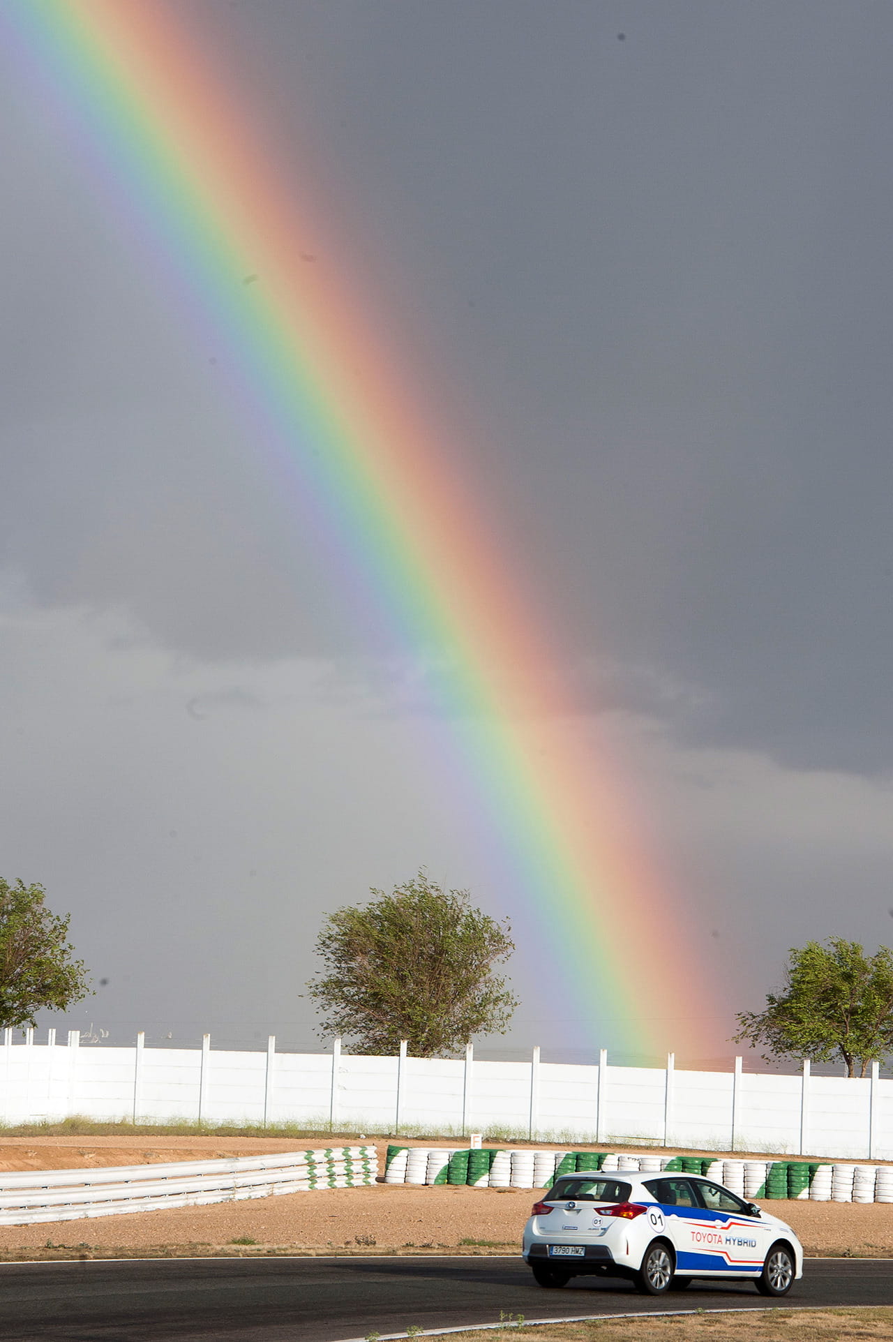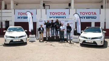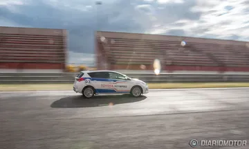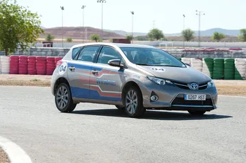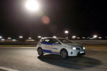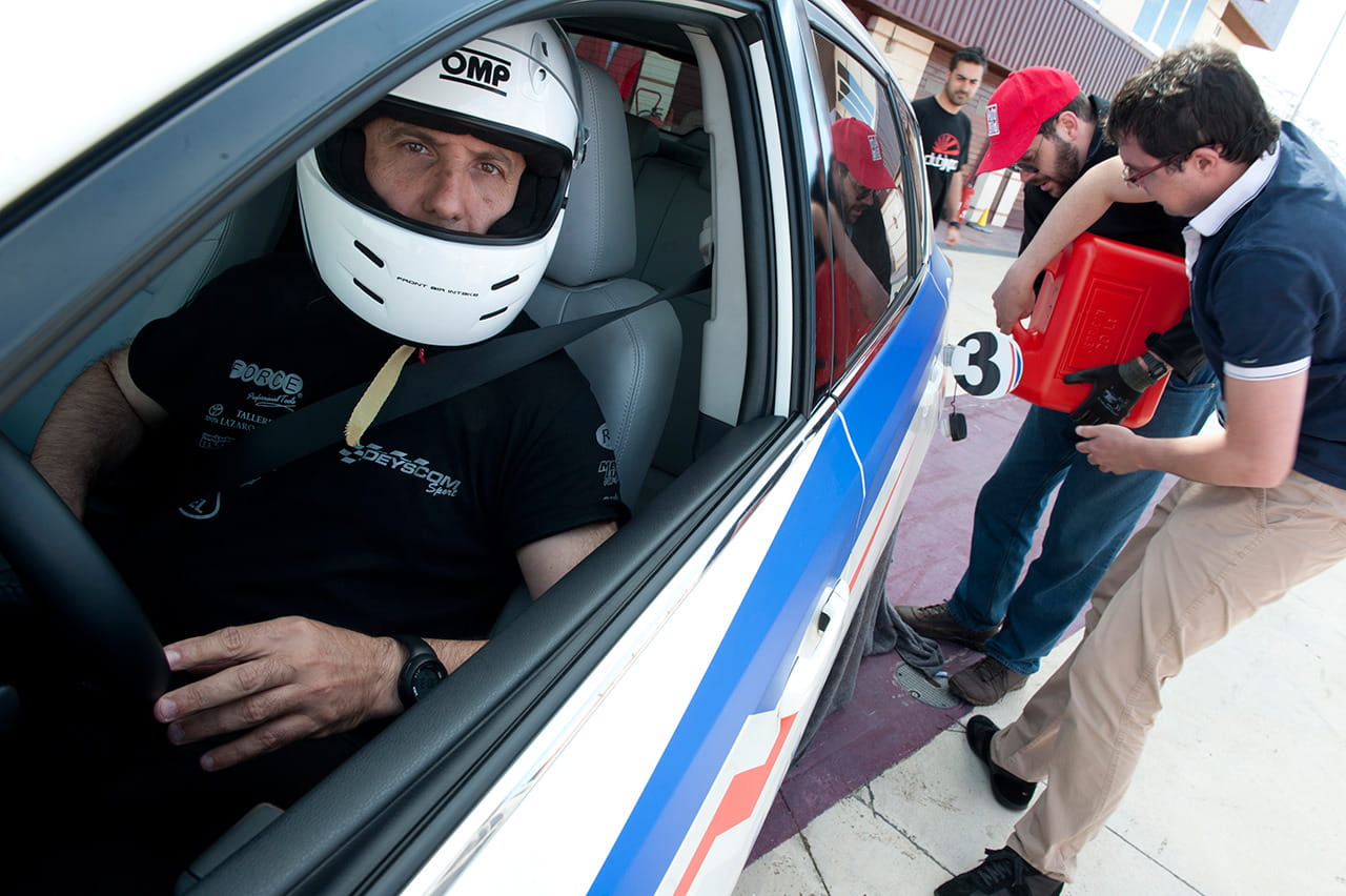 Toyota escogió uno de sus últimos lanzamientos híbridos para esta causa, el nuevo Toyota Auris Hybrid. Nos llenaron el depósito y nos dieron cuatro garrafas con veinte litros de gasolina para distribuir como quisiéramos. Con ellos, aproximadamente 125 litros en total, tendríamos que rodar durante 24 horas en circuito y, no solo eso, ser los más rápidos, los que más vueltas recorriéramos en ese tiempo, para ganar.
