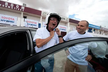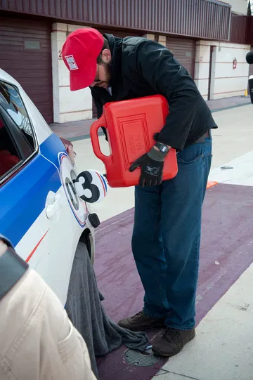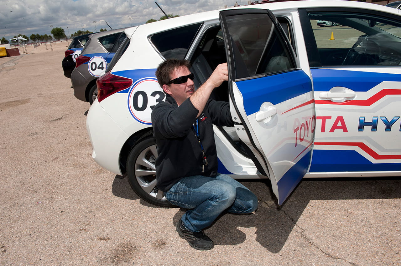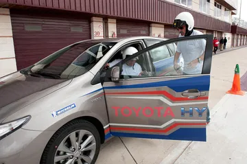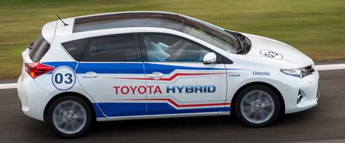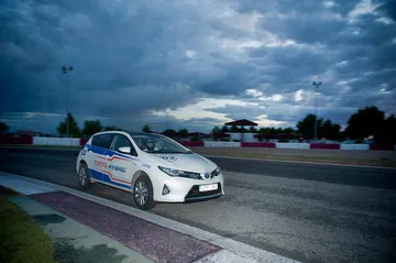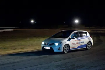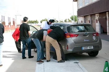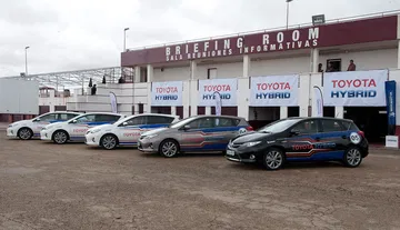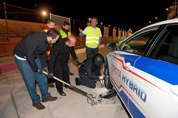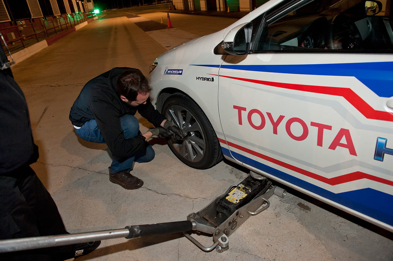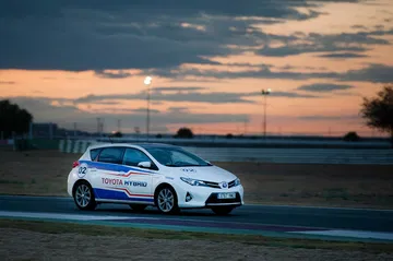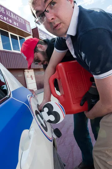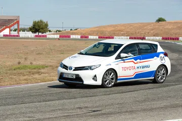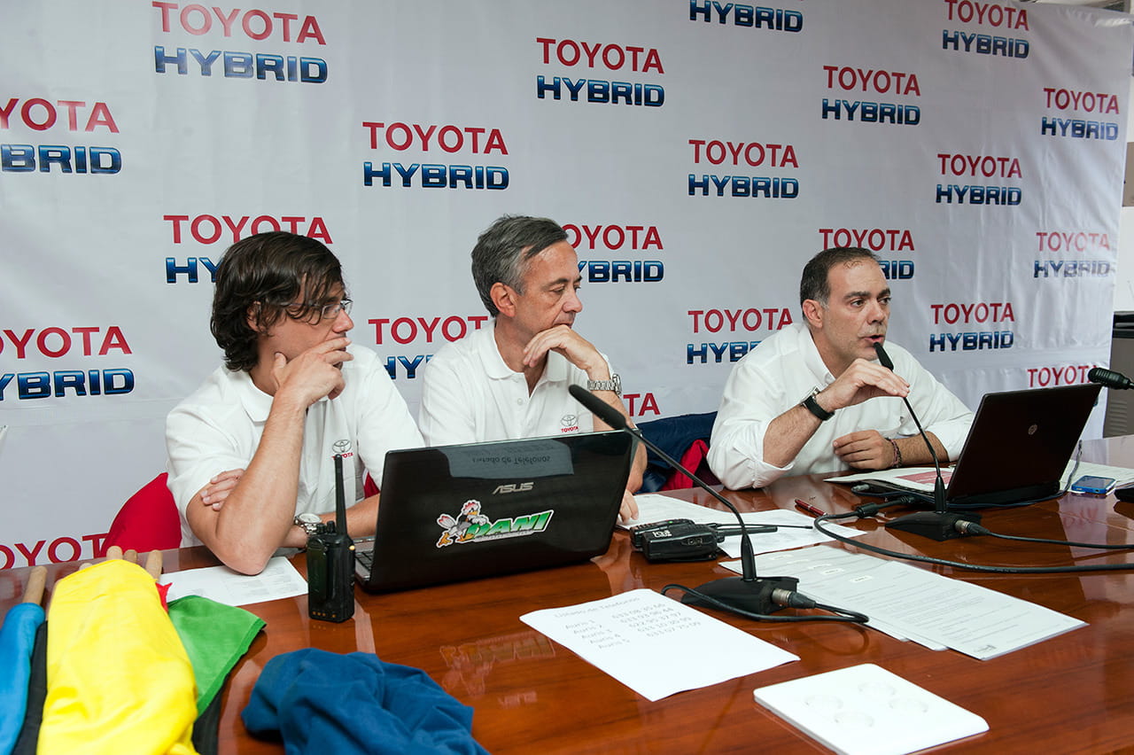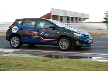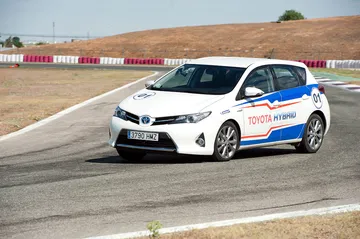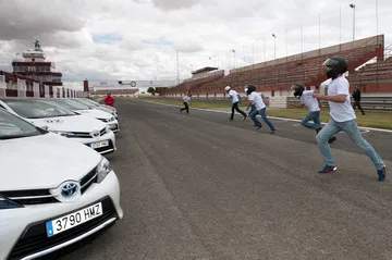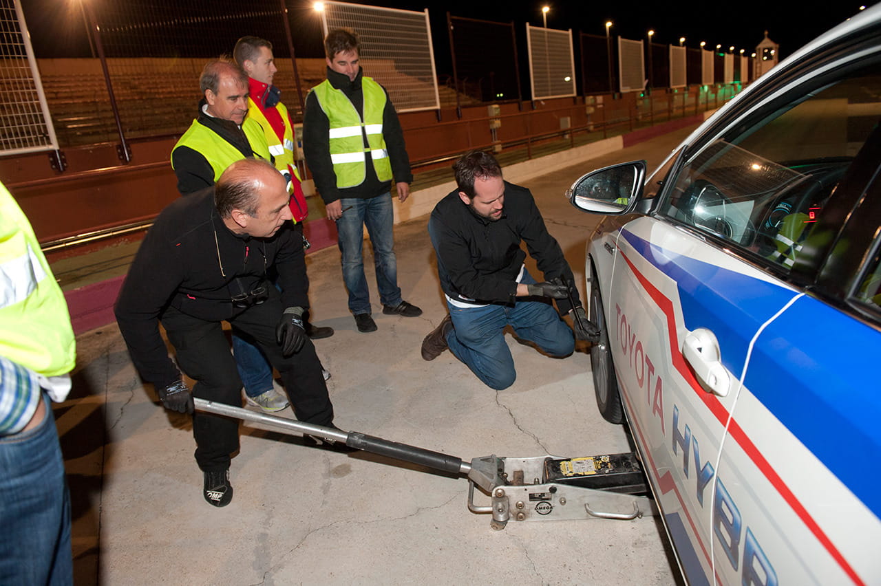 Toyota escogió uno de sus últimos lanzamientos híbridos para esta causa, el nuevo Toyota Auris Hybrid. Nos llenaron el depósito y nos dieron cuatro garrafas con veinte litros de gasolina para distribuir como quisiéramos. Con ellos, aproximadamente 125 litros en total, tendríamos que rodar durante 24 horas en circuito y, no solo eso, ser los más rápidos, los que más vueltas recorriéramos en ese tiempo, para ganar.