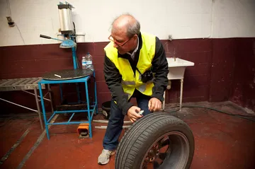 Y es que competir por la eficiencia no significa no ser exigentes con la goma. Perder velocidad haciendo sufrir al neumático, no es eficiente, pero a menudo se convierte en un mal necesario cuando quieres evitar por todos los medios frenar al entrar a esa curva o aprovechar los pianos de aquella chicane. A mitad de carrera todos los equipos tuvimos que cambiar el neumático delantero izquierdo, el que más sufrió por las características técnicas del circuito de Albacete. Al final de la carrera, cuando la prueba de resistencia y eficiencia se convirtió en épico sprint entre unos y otros, algunos neumáticos acabaron muy destrozados por la intensidad a la que fueron sometidos.
