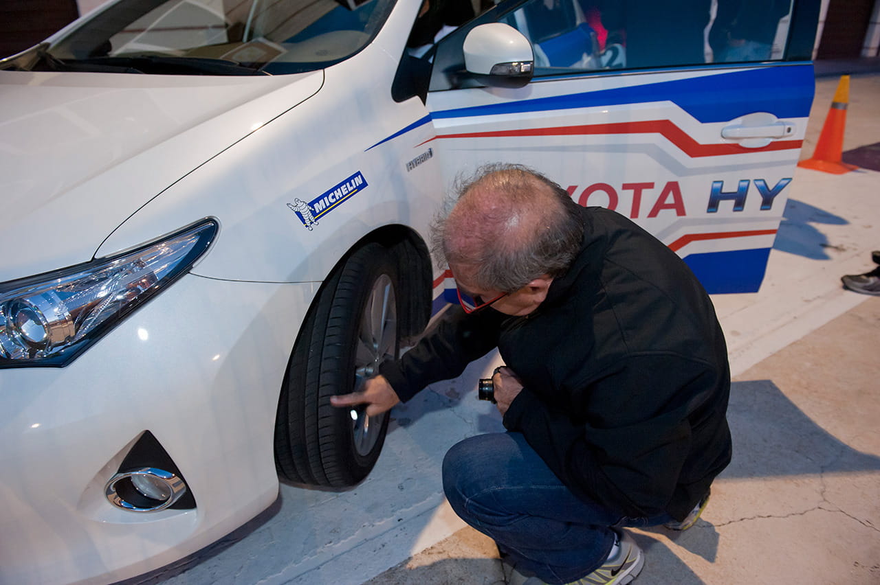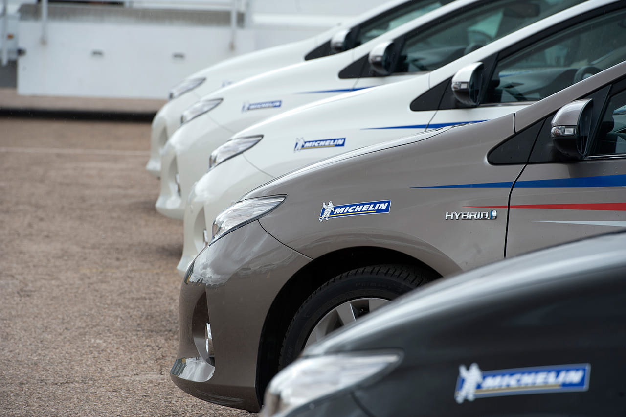 Michelin, el proveedor de neumáticos, llevó a sus técnicos para supervisar el manejo de las gomas que equipaban nuestros coches. Se escogió un Primacy 3, no tan eficiente como Energy Saver+ para ahorrar combustible, pero más adecuado a las exigencias de la conducción en circuito.