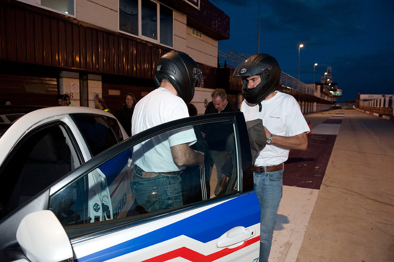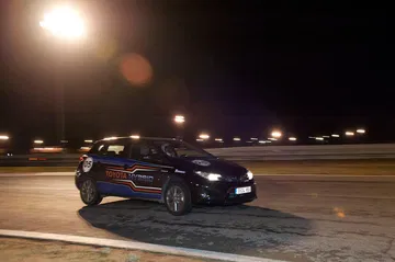 Pilotar un coche de madrugada es toda una experiencia, tranquilizador para cualquiera, pero complejo por lo diferentes que parecen algunas curvas y lo esquivas que se muestran algunas referencias. Pero lo cierto es que este circuito de Albacete está muy bien iluminado.