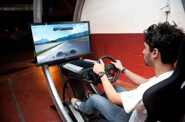 Sin movernos del sitio, el lugar en el que podríamos ir más rápido en esta presentación sería el simulador de Playstation y Gran Turismo 6 instalado en un box. El coche, lógicamente, un Scion FR-S, el que por estas tierras conocemos como Toyota GT-86.