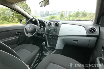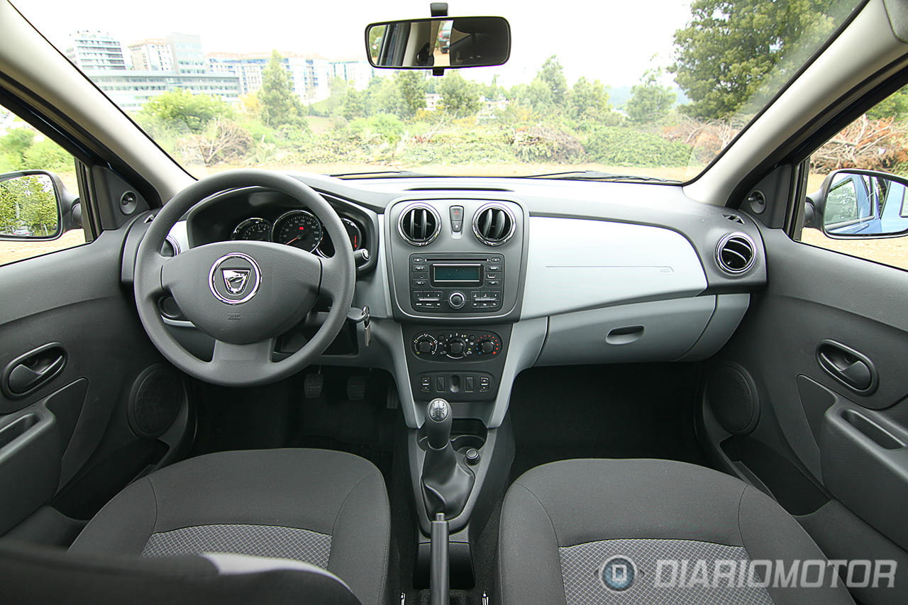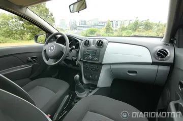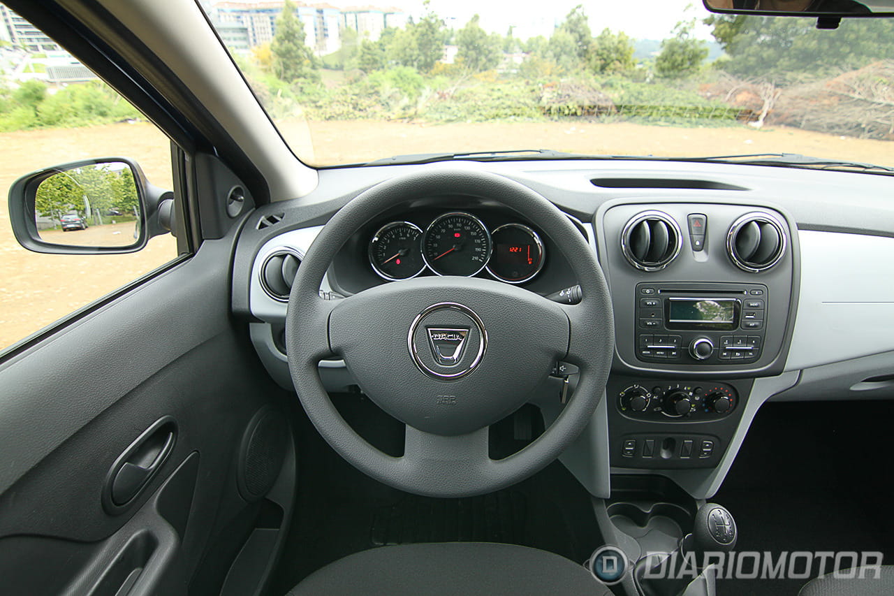Nos sentamos ya al volante del Dacia Logan con la intención de ponerlo en movimiento. El ruido diésel del motor Renault dCi de 75 CV se hace evidente dentro del habitáculo y parece haber sido objeto del aislamiento acústico mínimo necesario para no tener la sensación de viajar en un vehículo industrial. Aprobado raspado, pero aprobado.