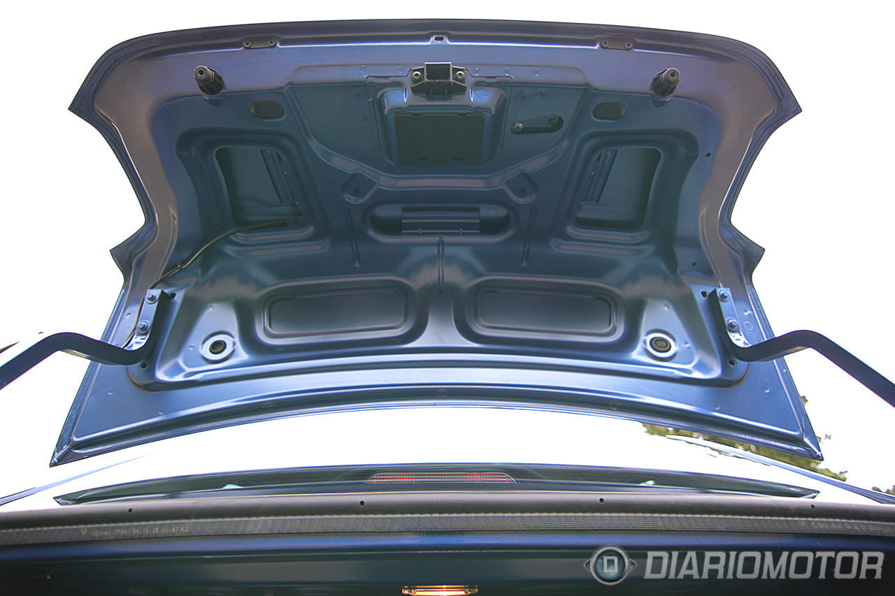 El maletero concentra la mayor densidad de detalles de ahorro, o al menos los más visibles. Para empezar no está totalmente tapizado, siendo visibles algunos cables de los pilotos traseros. El botón de apertura es también el tirador (función para la que resulta pequeño e incómodo), el mecanismo de apertura es accionado por dos grandes muelles visibles (estilo Seat años 70) y la tapa es de chapa desnuda y cortante por la parte interior, de forma que no es posible cerrarlo sin tocar el exterior y mancharnos las manos.