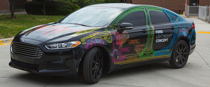 En Ford son conscientes del reto al que nos enfrentamos. Entre sus planes de futuro, el aligeramiento de todos los nuevos modelos que aún están por llegar. Ford ha conseguido una reducción de peso considerable para este prototipo de Ford Mondeo, medidas que se irán aplicando progresivamente en la medida que el uso de ciertos materiales, como el aluminio y los compuestos plásticos reforzados con fibra de carbono, y la complejidad técnica y el coste de producirlos, vaya atenuándose.