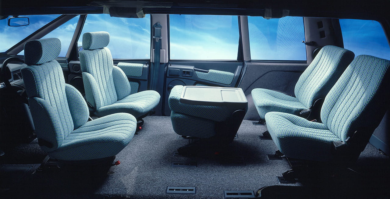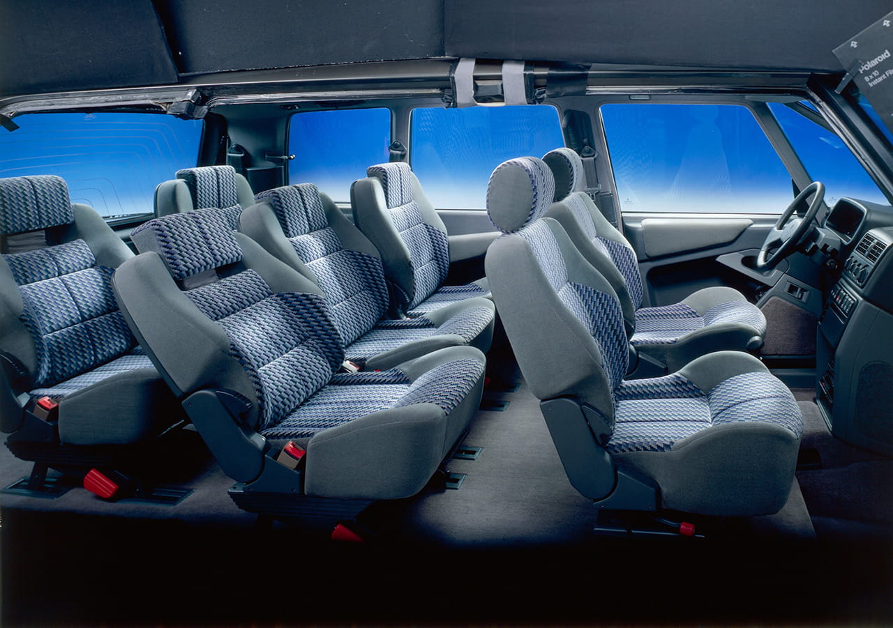 El Renault Espace supondría una verdadera revolución, un siete plazas capaz de utilizar dos o tres filas de asientos independientes, sencillos de desmontar y con la posibilidad de pivotar para cambiar la configuración y orientación de las plazas. Su inmensa superficie acristalada también se convertiría en una de las señas de identidad del Espace.