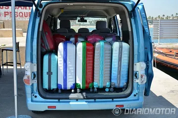 En tanto a sus posibilidades como herramienta de transporte, encontramos un volumen de carga de 4,2 m3 en la variante “Van” y unos interesantes 2,27 m3 en las carrocerías dedicadas al transporte de pasajeros con hasta cinco plazas. El peso máximo admisible será de 770 kilogramos. Nissan no tiene planeado ofrecer la e-NV200 Evalia con opción de 7 pasajeros, aunque por medidas y capacidad de carga sería una opción totalmente viable sin demasiadas modificaciones.