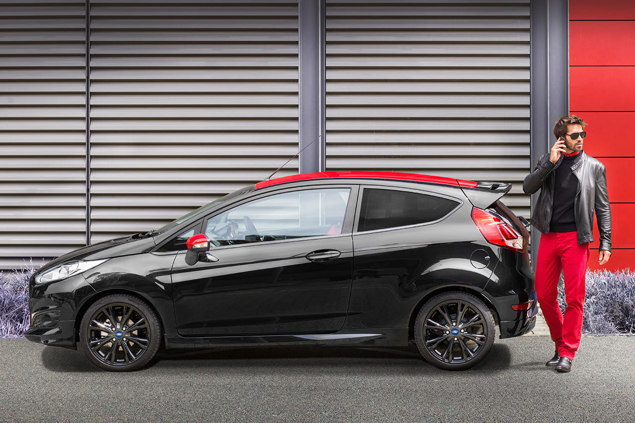 Tanto el Ford Fiesta Red Edition como el Black Edition han recurrido a un kit estético que comprende defensas, faldones, spoiler trasero y llantas de aleación en negro Panther Black de 16” y opcionalmente 17”. Aunque lo que concierne a su mecánica nos resulte de lo más interesante, hay que tener en cuenta que la estética será uno de los grandes condicionantes de estas dos ediciones, en las que Ford ha querido aprovechar los acabados en dos tonos, para el techo y diversos detalles de la carrocería, como el marco de la parrilla, o las cubiertas de los retrovisores. También se distinguirá por ciertos detalles y la nota de color del diseño a bordo.