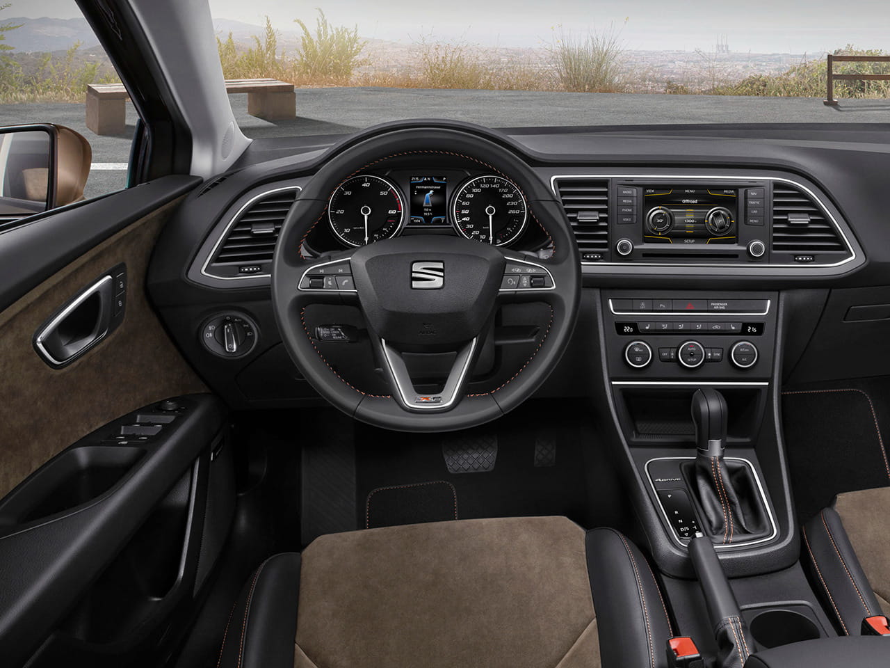 A bordo también contará con un detallado especial. En estas primeras fotografías se aprecia un SEAT León X-Perience con tapizado mixto de piel y Alcantara, así como un programa especial Offroad del equipo de entretenimiento que, gracias a un giroscopio, una brújula y la información del GPS, nos indicará la inclinación del terreno, la altitud y la posición exacta del norte.