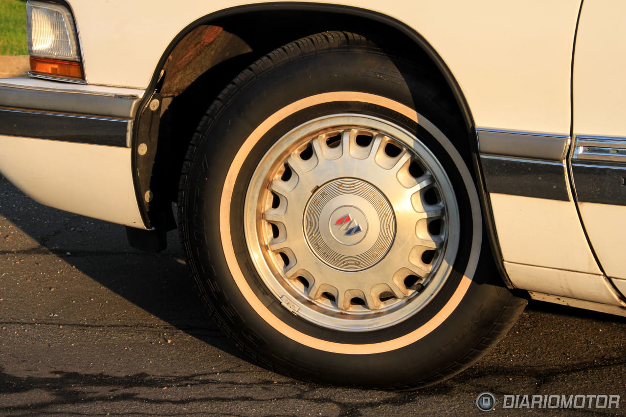 La rueda trasera está parcialmente carenada, dando al coche uno de sus rasgos más distintivos. Además los neumáticos son «white walls», neumáticos en los que se pinta una franja blanca. Un detalle completamente anacrónico, que hoy en día no se ve de serie en ningún vehículo, sólo como accesorio en lo que casi siempre son Cadillac exclusivamente. Decididamente, el Buick Roadmaster no es un vehículo moderno, pero tampoco lo era cuando su octava generación – la probada – fue lanzada en el lejano año 1991.