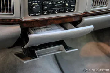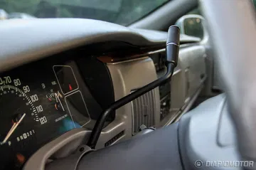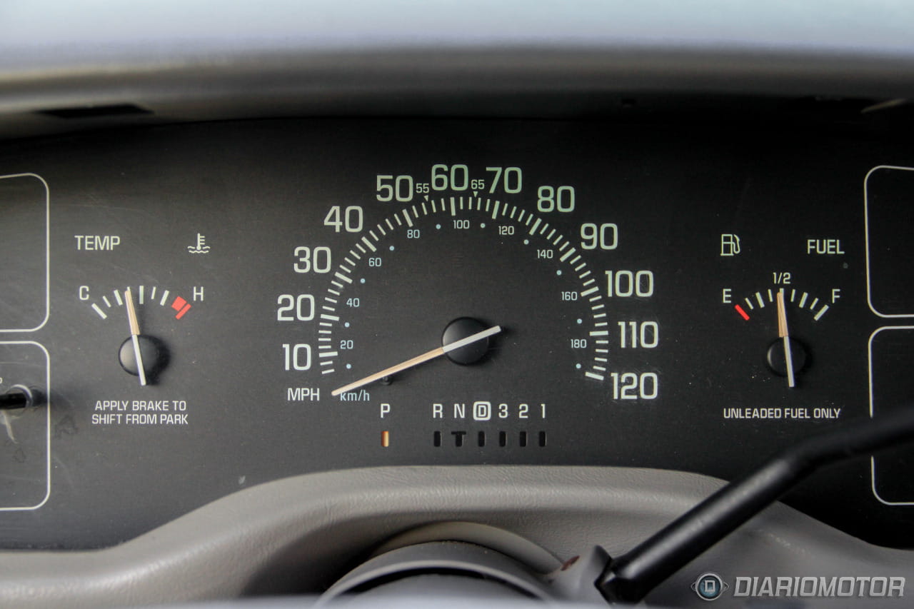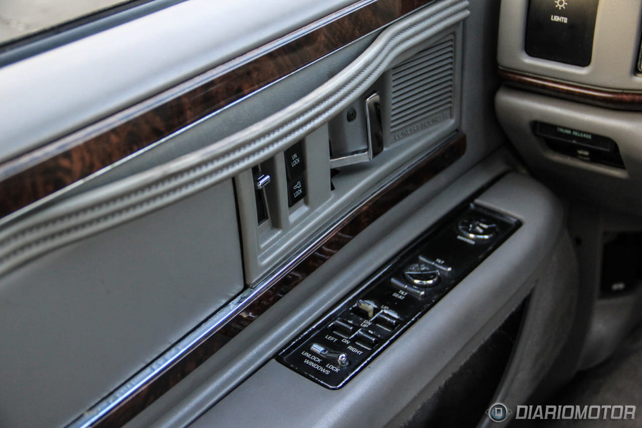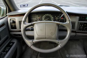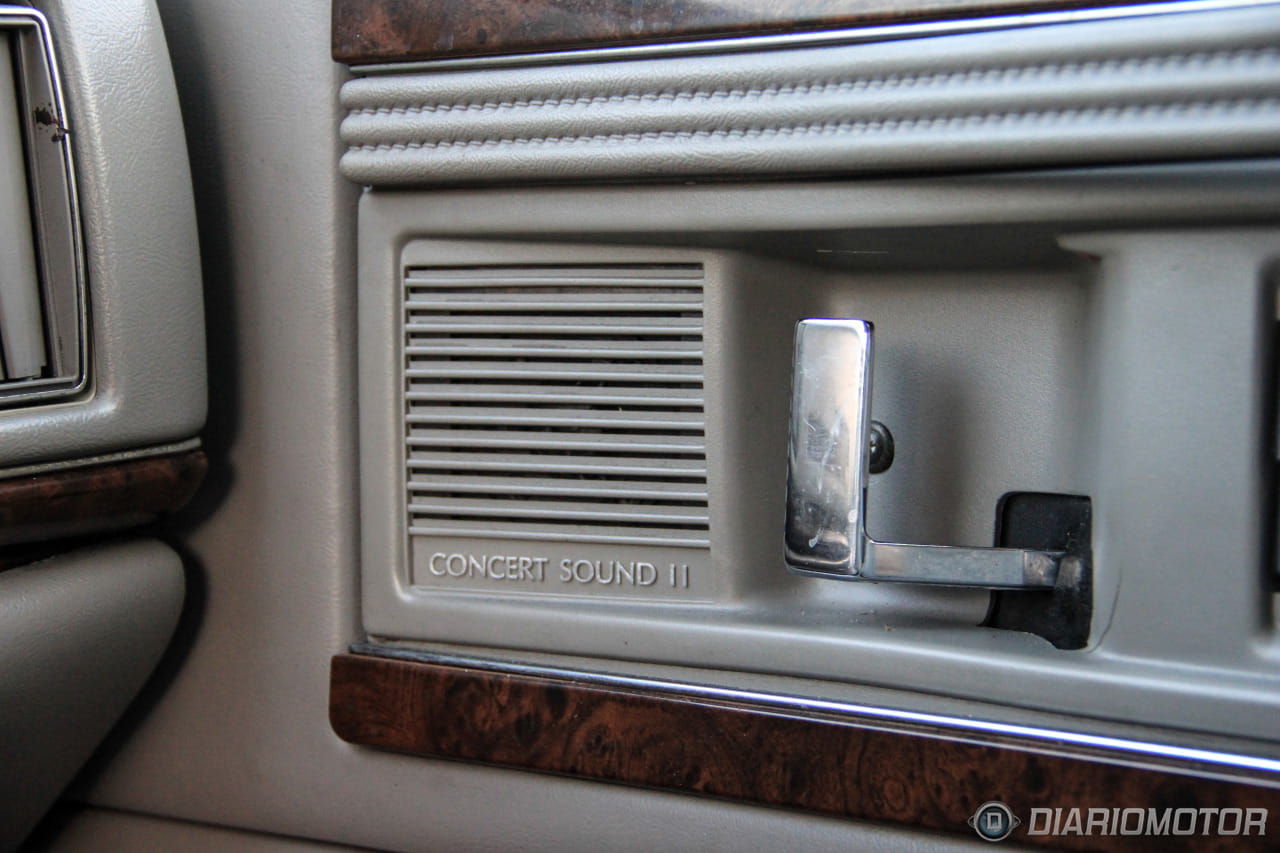 La instrumentación sólo cuenta con un velocímetro, temperatura del agua y cantidad de combustible. No hay ninguna complicación electrónica a la vista, y sólo un botón para encender y apagar las luces. Sin embargo, en la puerta tengo todo tipo de reglajes eléctricos para el asiento del conductor. Las únicas botoneras que hay en la consola central son un sencillo – pero potente – equipo de audio y los controles del climatizador. El volante es sólo regulable en altura. Un emblema reza Roadmaster y otro Dynaride, refiriéndose a la suspensión del coche.