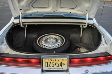 Si los asientos delanteros son grandes, los traseros lo son aún más. Nuestro salón rodante se completa con un maletero en el que es posible guardar cuatro o cinco cadáveres frescos, en el que una enorme rueda de repuesto ocupa parte del espacio. La cifra de carga es desconocida para mí, pero a tenor del espacio disponible no me extrañaría que superase los 800 litros, con más de un metro de profundidad. Curiosamente, la boca del depósito de gasolina está ubicada tras la matrícula del coche en lugar de en uno de los laterales del vehículo.