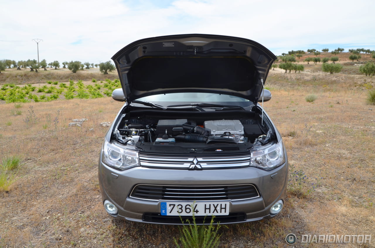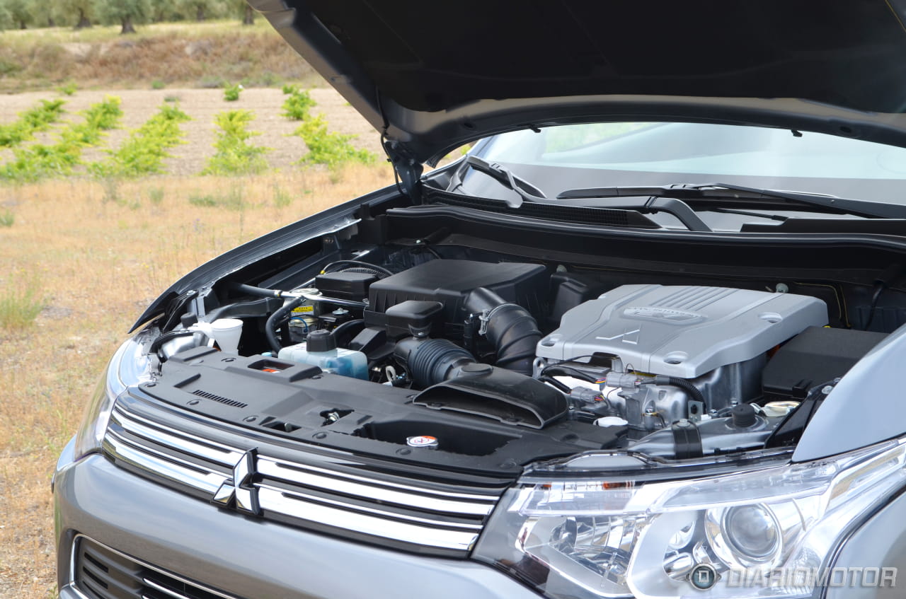 El Mitsubishi Outlander PHEV es el primer vehículo híbrido enchufable con tracción total permanente y dos motores eléctricos con capacidad de generación autónoma fabricado en serie. Cuenta con un esquema mecánico en el que nos encontramos con dos motores eléctricos de 82 caballos cada uno (con un par de 137 Nm el delantero y 195 Nm el trasero) situados en ambos ejes junto a un motor de gasolina atmosférico de 2 litros y 4 cilindros que entrega una potencia de 121 caballos para una potencia final combinada de 203 caballos. Este motor se sitúa al frente junto a generador.