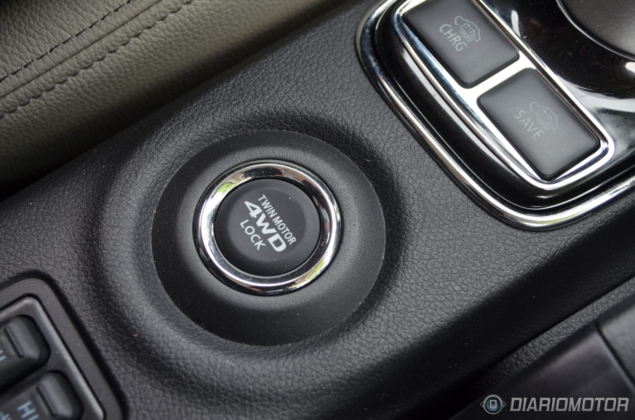 Para conseguir la tracción total, el Mitsubishi Outlander PHEV se vale del motor eléctrico trasero y del eléctrico y gasolina delantero para mover así los ambos ejes y conseguir la tracción total, que podremos forzar a través de un botón situado en el puente central.