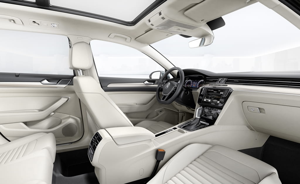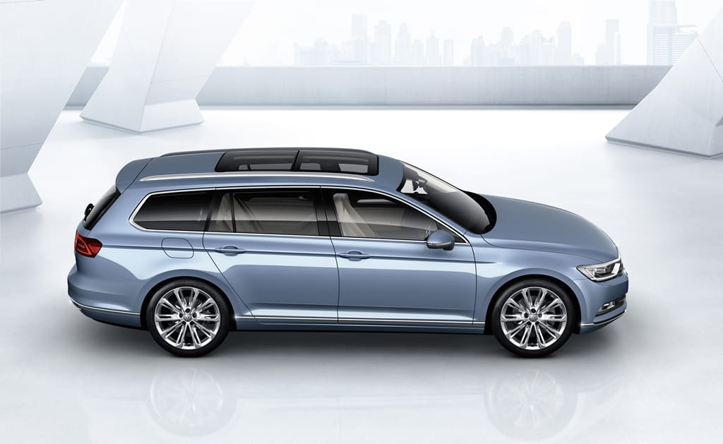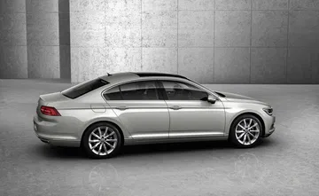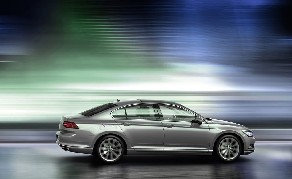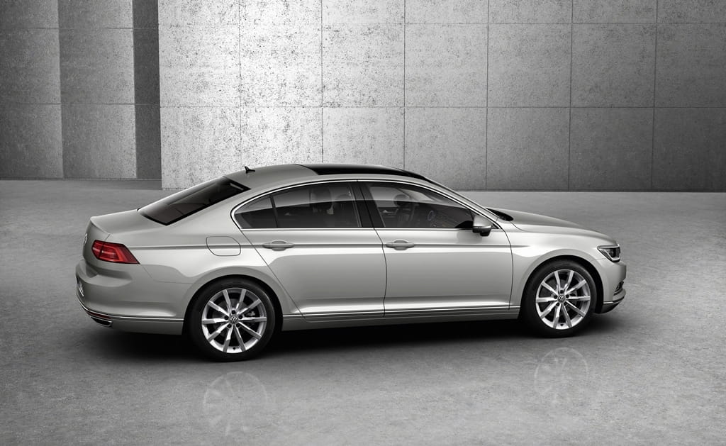 El uso de la plataforma MQB ha permitido reducir el tamaño en 20 milímetros, hasta dejar la longitud total en 4.866 mm, sin embargo se ha ganado espacio interior con una batalla de 2.791 mm y más capacidad para el maletero: 586 litros en la berlina y 650 en el familiar Passat Variant.