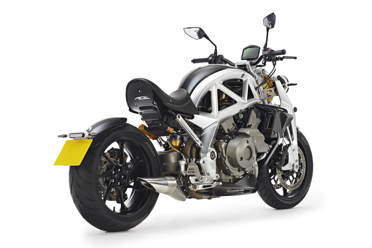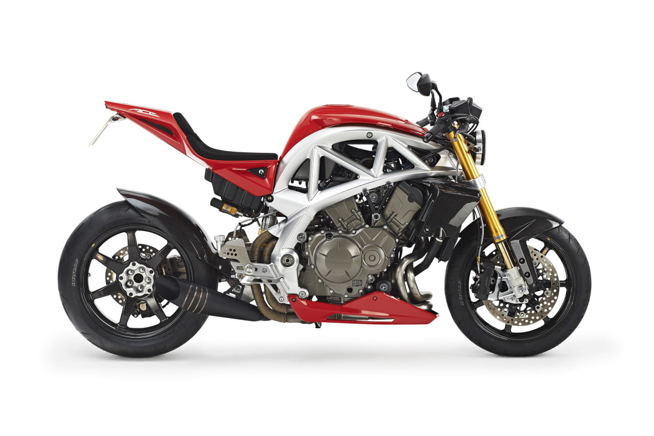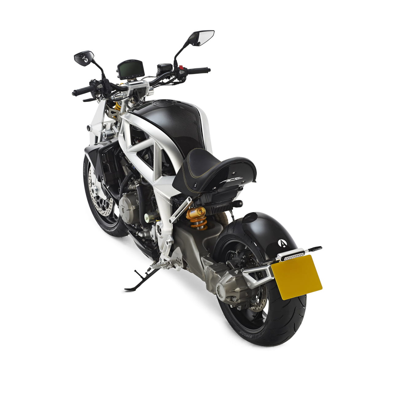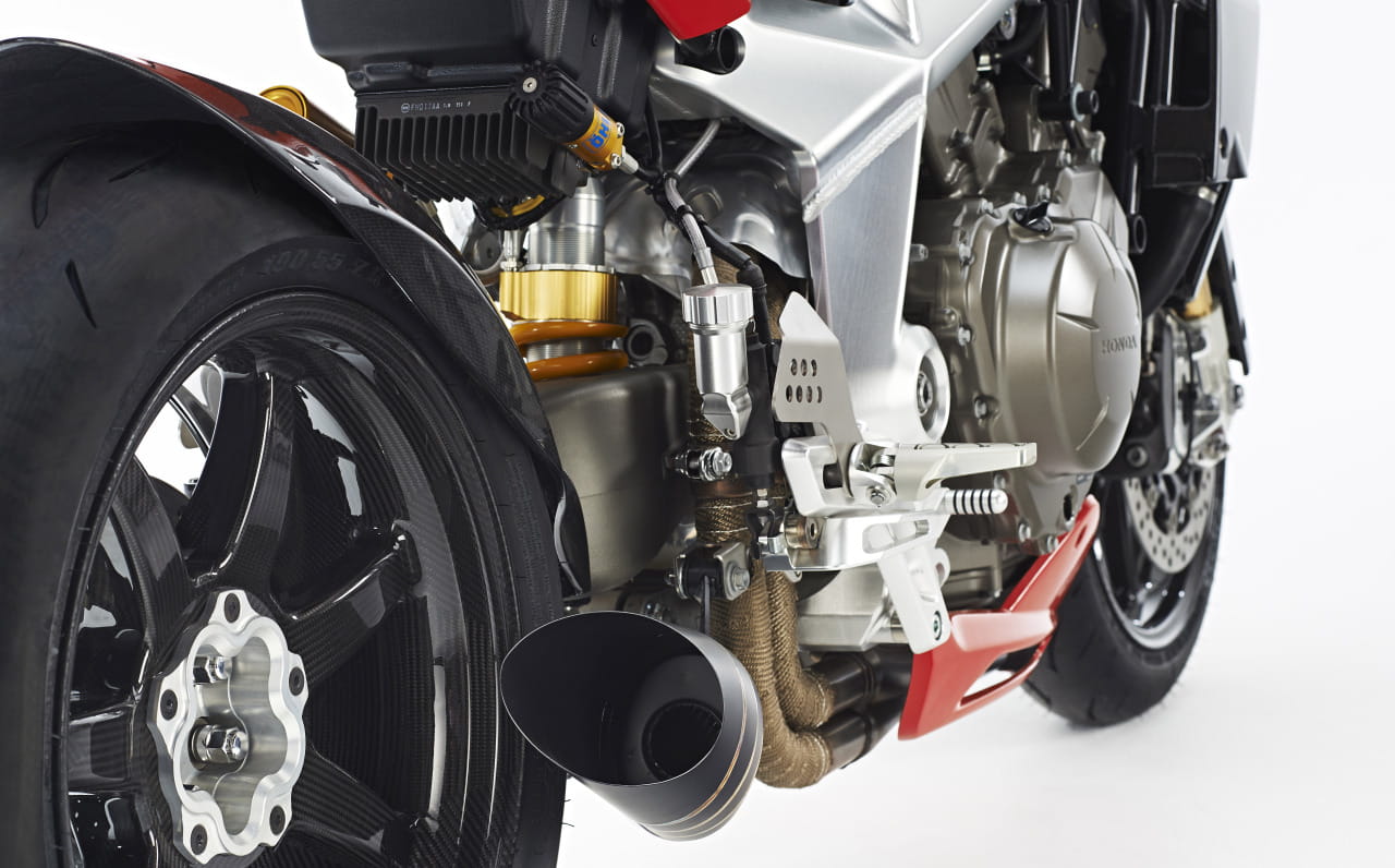 Igual que en el Ariel Atom, que recordemos llegaba incluso a contar con una edición especial Mugen, la nueva moto de la firma británica llega movida por un corazón Honda, en este caso por el de la Honda VFR1200 que con 1.237 cc y una disposición en V4 desarrolla una potencia de 173 caballos y 129 Nm de par.