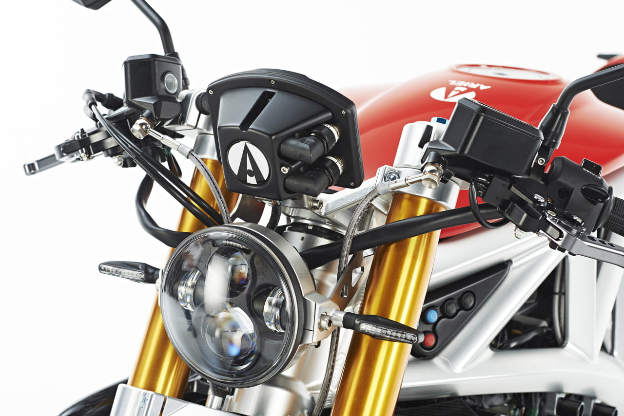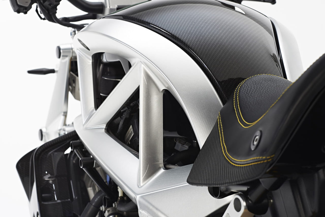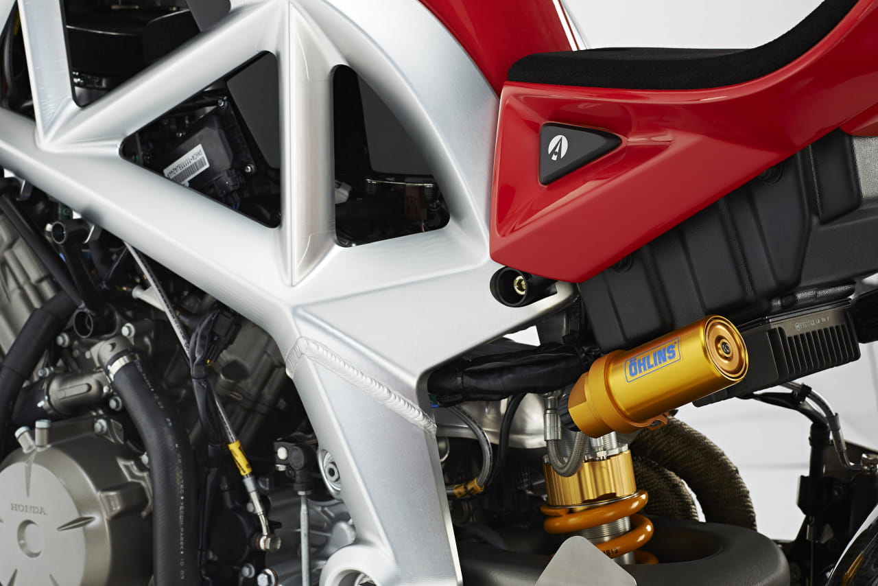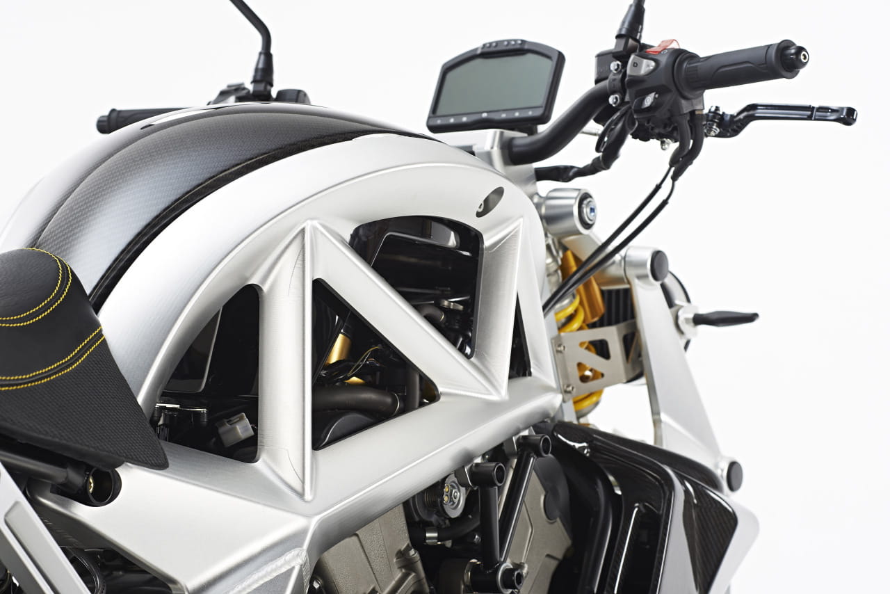 Igual que en el Ariel Atom, que recordemos llegaba incluso a contar con una edición especial Mugen, la nueva moto de la firma británica llega movida por un corazón Honda, en este caso por el de la Honda VFR1200 que con 1.237 cc y una disposición en V4 desarrolla una potencia de 173 caballos y 129 Nm de par.