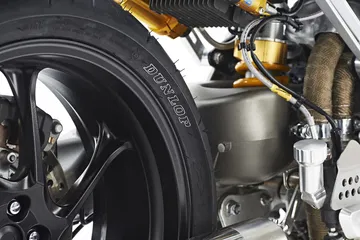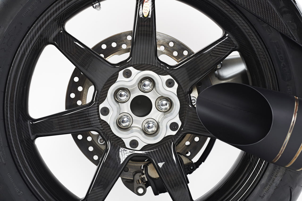 Entre sus llantas nos encontramos con la posibilidad de recurrir a llantas de carbono, contando con Dunlop para sus neumáticos.
