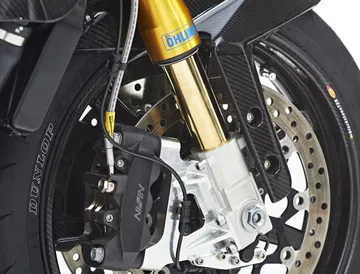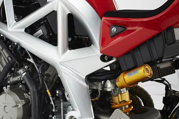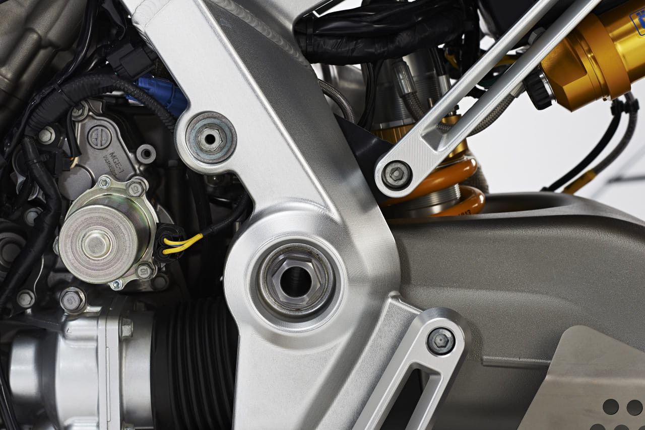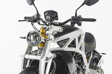 Su suspensión delantera también es una pieza clave en esta customización permitiéndonos elegir entre una curiosa horquilla de extravagantes formas y una horqilla invertida de corte más convencional firmado en ambos casos por öhlins, confiando en Pro Link para la suspensión trasera. Más allá de elegir entre una horquilla u otra también es configurable su puesta a punto.