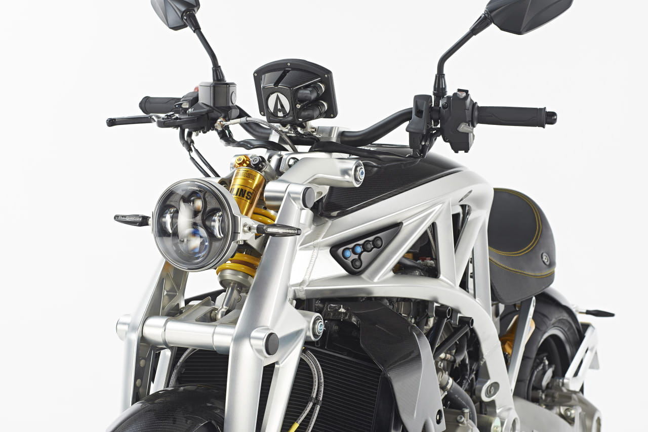 Ariel parece que ha decidido apostar por un chasis multitubular para unir la imagen de su coche con el de esta nueva moto, siendo en ambos casos una pieza fundamental en su diseño. Desarrollado en aluminio destaca la curvatura que parte desde la base del asiento hasta abrazar los laterales del depósito de combustible.