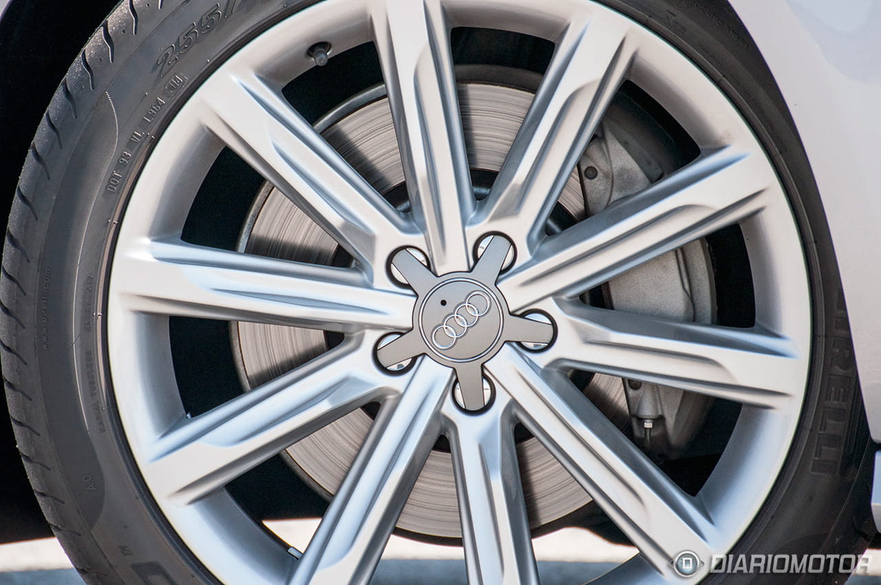 Visualmente no tiene tanto que envidiar a un S7, puesto que goza del paquete deportivo S Line, carrocería rebajada 20 milímetros, llantas de 20” con diseño de cinco radios en uve doble, neumáticos 265/35 y pinzas de freno rojas. A bordo, la deportividad continúa. Tapizados de piel Valcona con trama de rombos, costuras visibles, inserciones de aluminio y madera, el emblema quattro en los perfiles de las puertas con galvanizado de aluminio.
