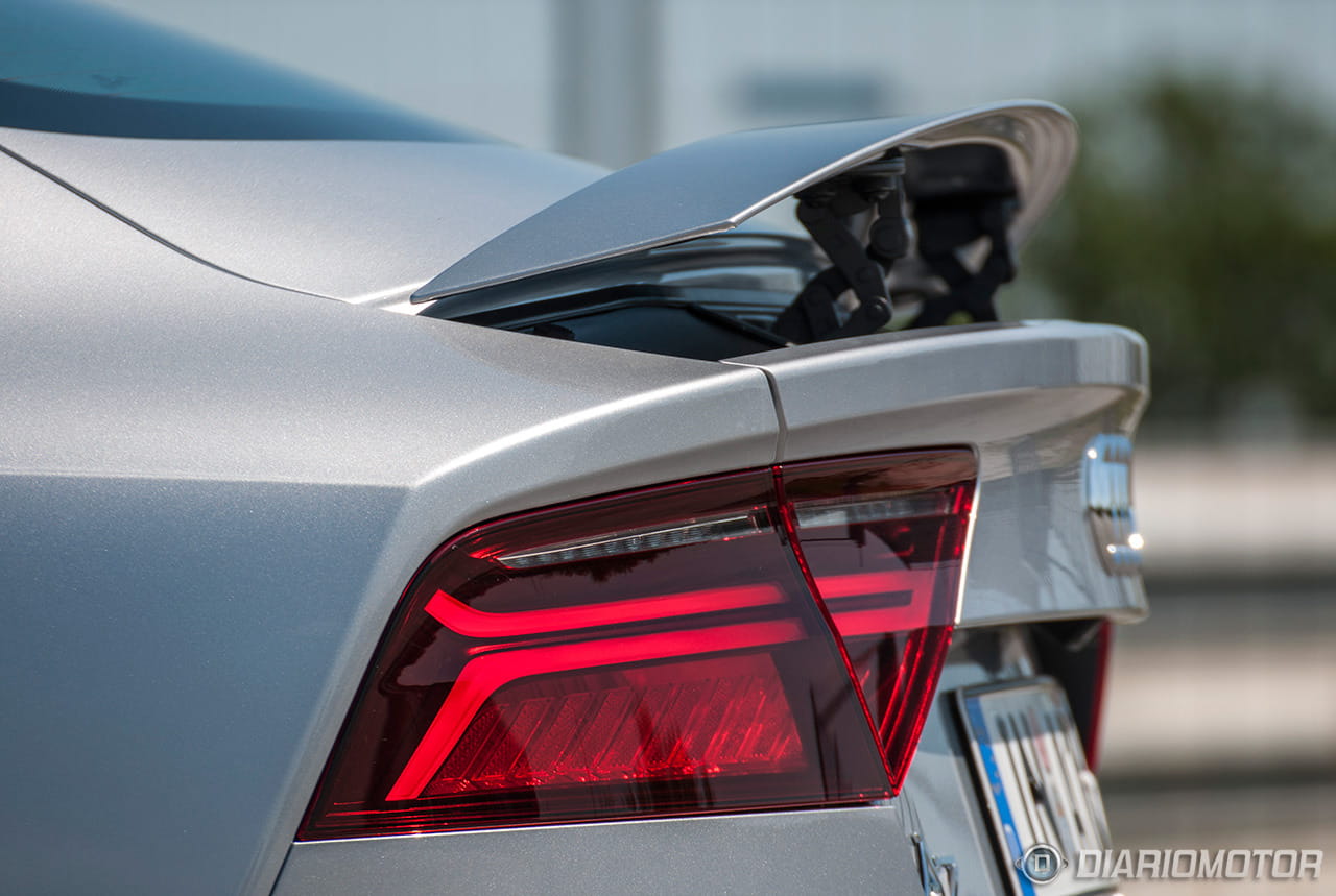 Antes de marcharnos no quería perder la oportunidad de enseñaros otros detalles de este Audi A7, como su spoiler activo sobre la tapa de maletero que se despliega a partir de 130 km/h, o a gusto del consumidor con un botón en la consola central, por ejemplo para fotografiarlo de esta guisa.