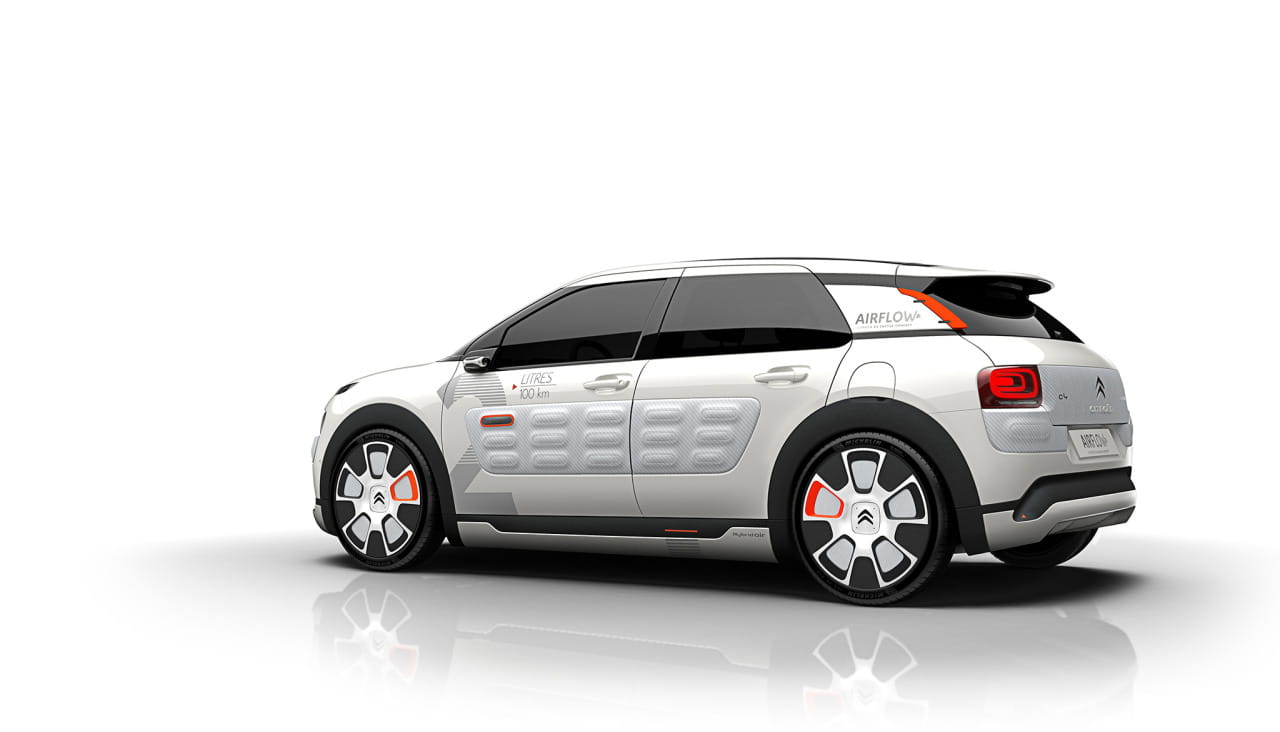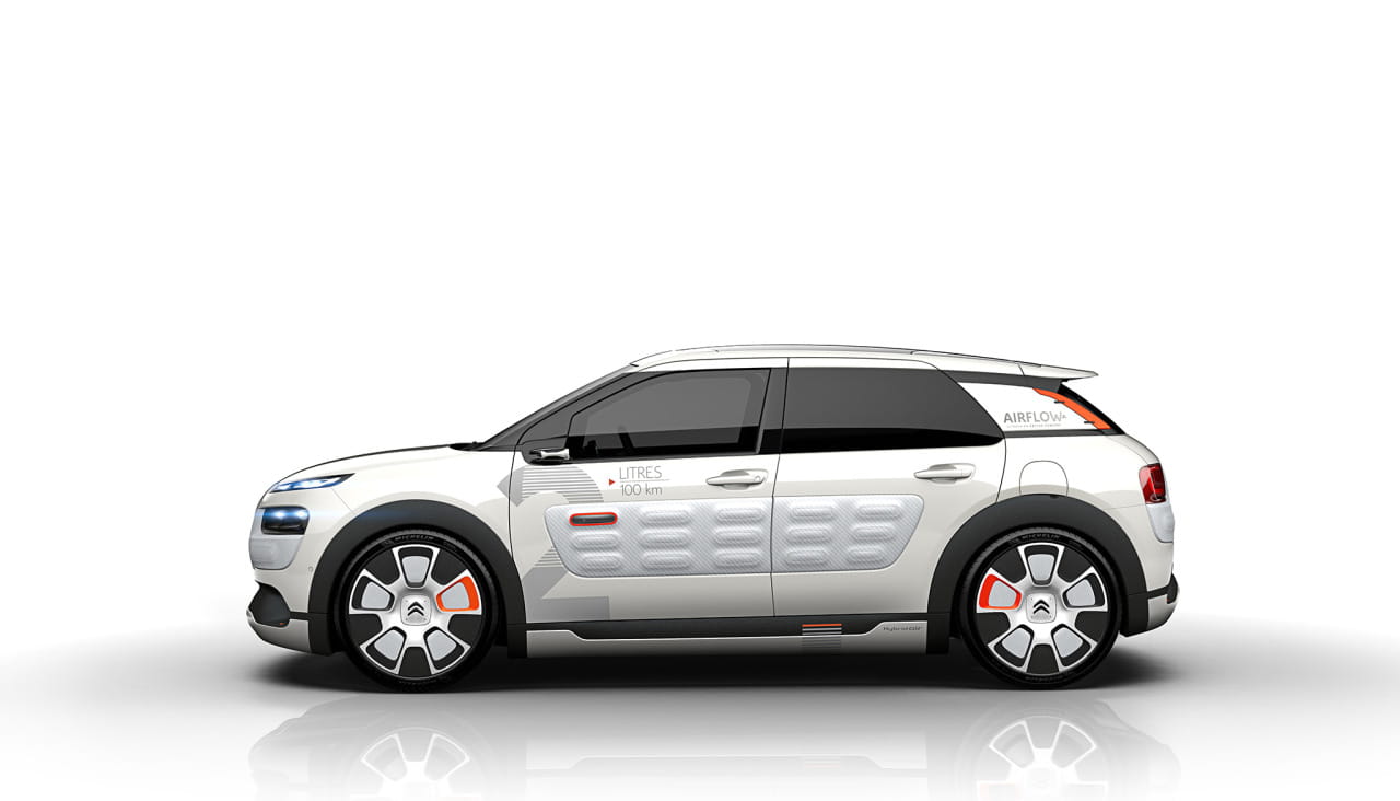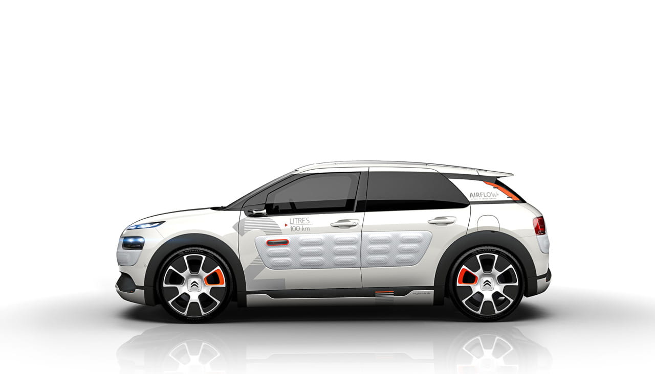 La industria francesa se ha confabulado contra el consumo desmedido de combustible. PSA (Peugeot Citroën) y Renault, junto con Faurecia, Michelin, Plastic Omnium y Valeo, han unido fuerzas para desarrollar tecnologías con un compromiso, lograr que el consumo de sus modelos baje hasta los 2 litros/100 kilómetros y las emisiones de CO2 hasta 50 g/km. El resultado lo veremos en un par de semanas en el Salón de París, en prototipos como el Peugeot 208 2L Hybrid Air, el Renault EOLAB Concept y el mismo del que te hablaremos en este artículo, el Citroën C4 Cactus Airflow 2L Concept. ¿Hasta dónde puede llegar la eficiencia en un C4 Cactus? Lo veremos a continuación.